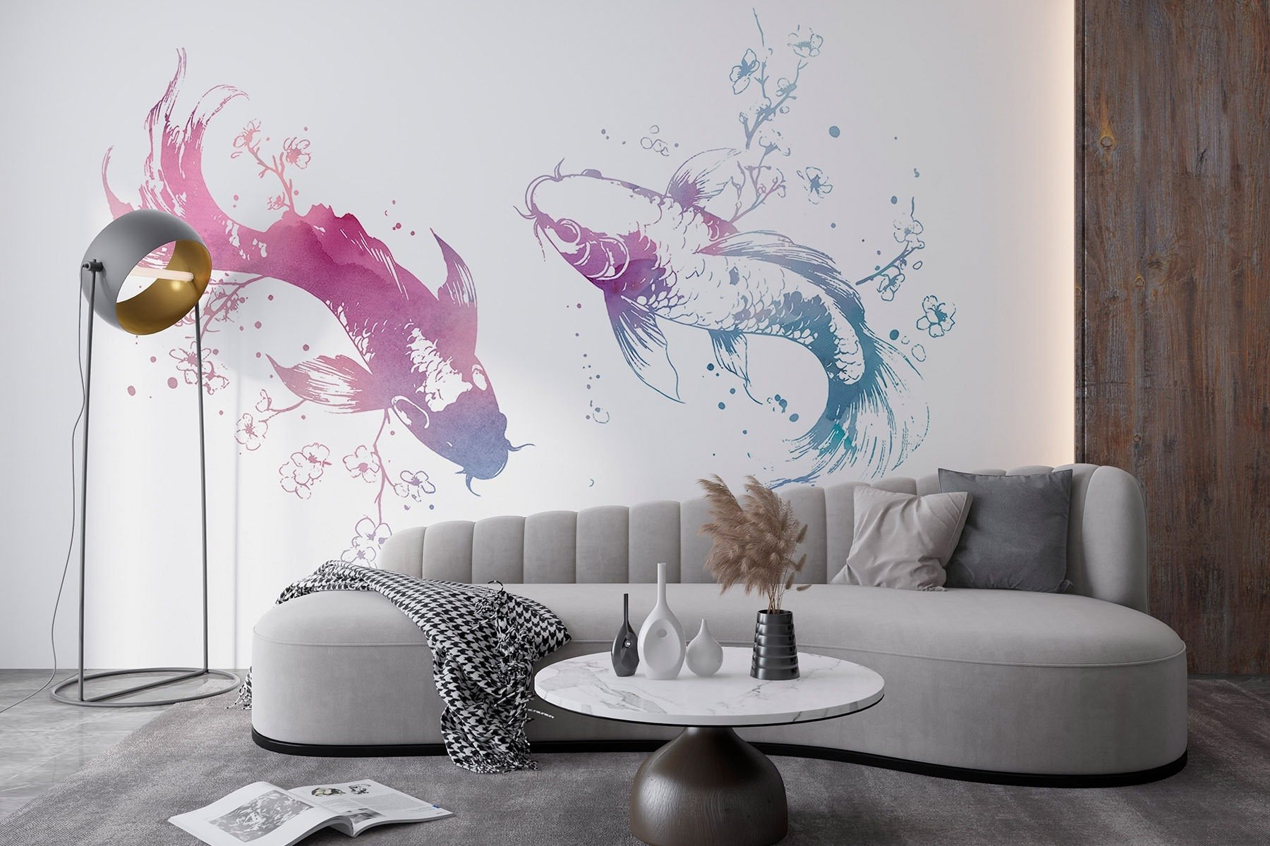 Trasformate il vostro spazio con questo incantevole murale con due eleganti pesci che nuotano tra schizzi di acquerello. È come portare una fetta di mare a casa vostra, senza la sabbia nelle scarpe. Le tinte tenui danzano sul murale, evocando un senso di calma che può facilmente illuminare qualsiasi stanza. Immaginate di sedervi in un angolo accogliente, sorseggiando un tè, mentre questi pesci leggiadri sembrano scivolare: potreste persino dimenticare di essere in casa. È un tocco affascinante che sussurra raffinatezza e serenità, perfetto per creare un’atmosfera tranquilla. Non stupitevi se inizierete a chiacchierare con i pesci: potrebbero avere delle storie da raccontare!