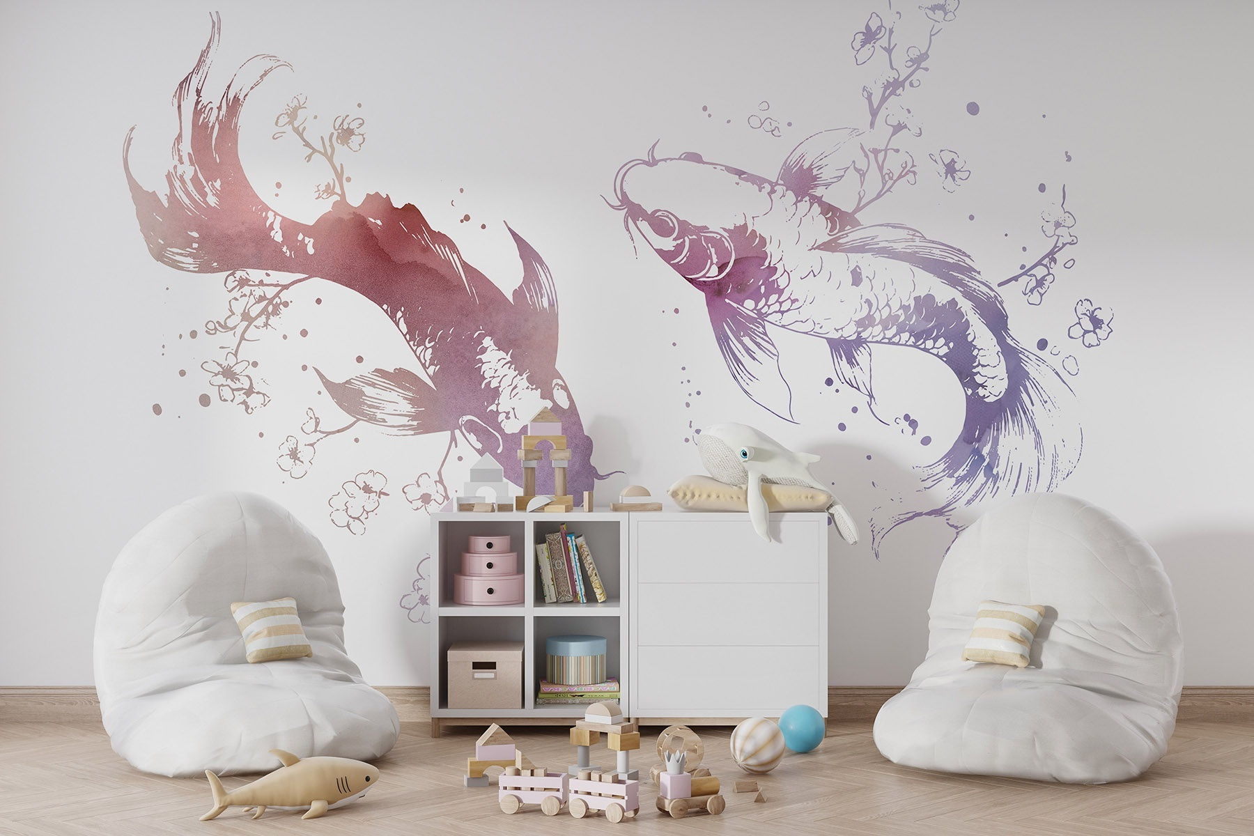 Trasformate il vostro spazio in un paese delle meraviglie acquatico con questo incantevole murale che raffigura due graziosi pesci che nuotano tra fiori delicati e foglie vorticose. Immaginate di entrare in un sereno mondo sottomarino, dove l’arte danza sulle vostre pareti, evocando calma e creatività. Lo stile acquerello di questo murale aggiunge un tocco stravagante, rendendolo perfetto per un accogliente angolo lettura o per una ventilata zona giorno a tema spiaggia. Immaginate di sorseggiare un tè mentre i pesci sembrano scivolare dolcemente, portando la natura direttamente a casa vostra. È come un’oasi personale, senza i piedi bagnati e le alghe!