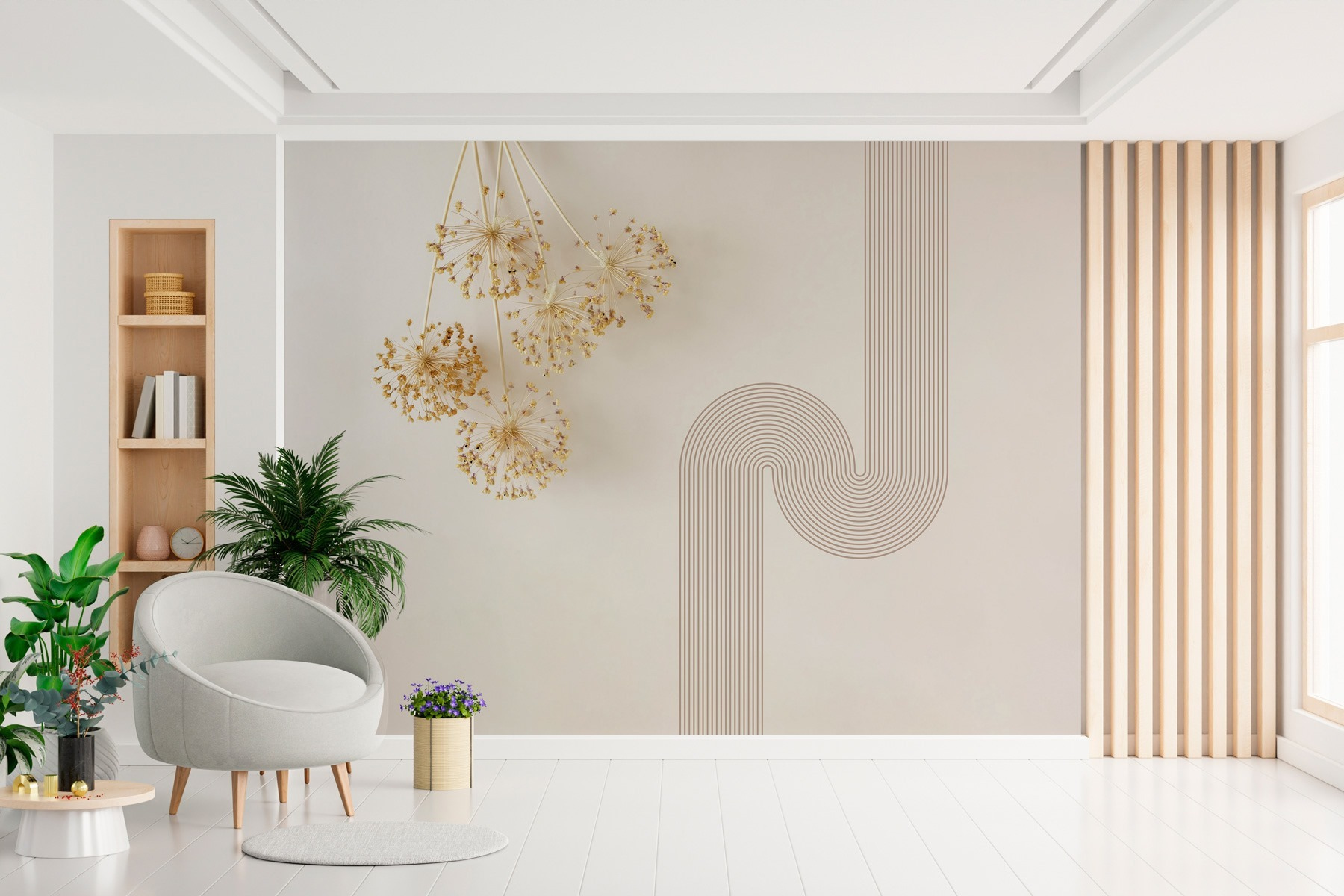 Guardate esattamente come apparirà il vostro spazio con la nuova carta da parati prima di acquistarla. Visualizzazione professionale da parte di designer esperti senza alcun costo o obbligo di acquisto.