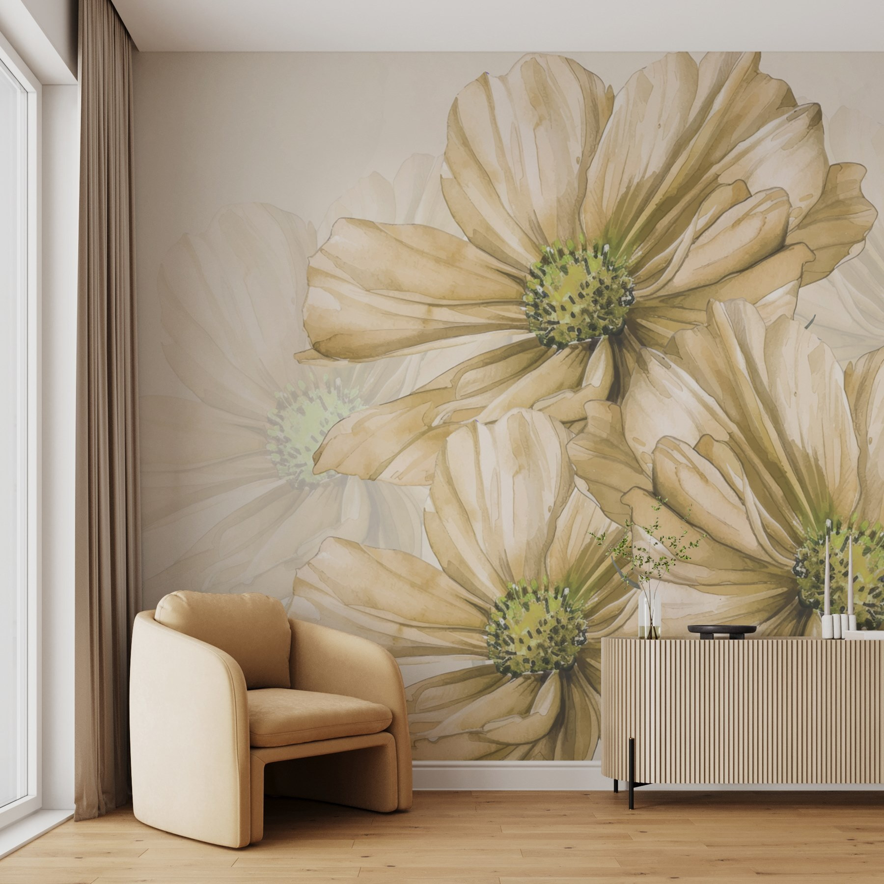 Trasformate qualsiasi spazio in un rifugio sereno con questo murale che raffigura un accattivante gruppo di fiori. Immaginate questi delicati fiori con i loro incantevoli centri verdi che ondeggiano dolcemente nella brezza: è come avere un giardino fresco in casa. Ideale per gli amanti della natura o per chiunque desideri un tocco di tranquillità, questo acquerello artistico vi trasporta in giornate di sole e calde vibrazioni. Immaginate di sorseggiare un tè guardando questo murale, lasciando che la vostra immaginazione faccia una passeggiata tra i campi dei sogni. È più di una decorazione, è un invito a rilassarsi e a respirare. Abbracciate la bellezza e lasciate che illumini la vostra giornata.