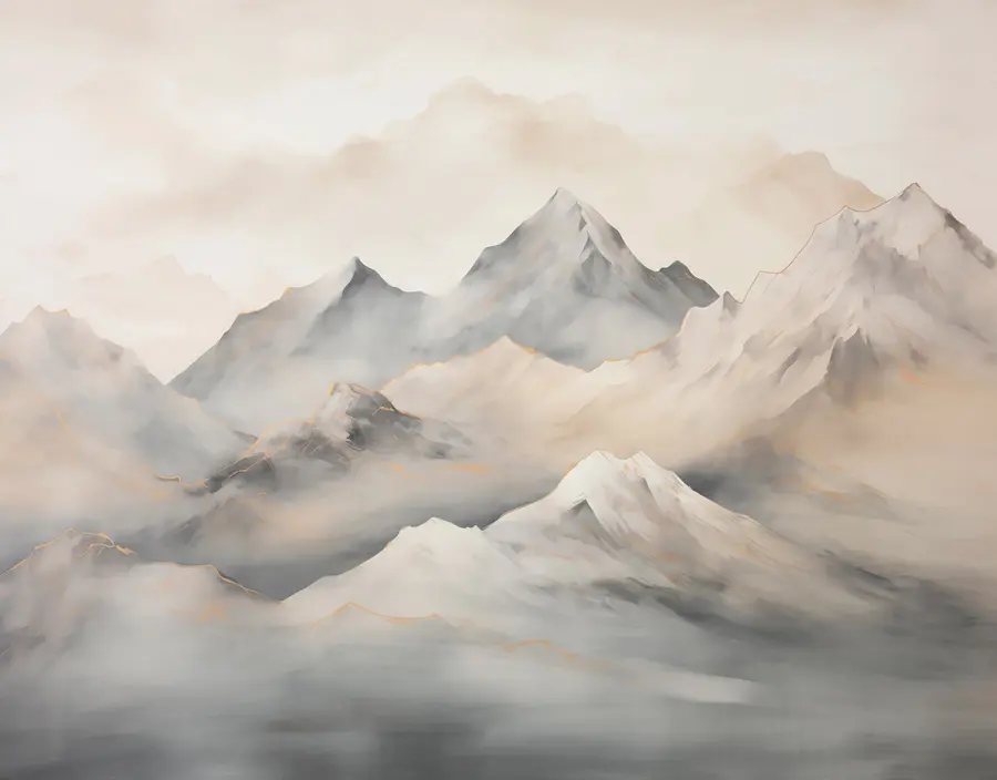 Carta da parati Carta da parati Pittura di montagne con nuvole (SKU: w03519)