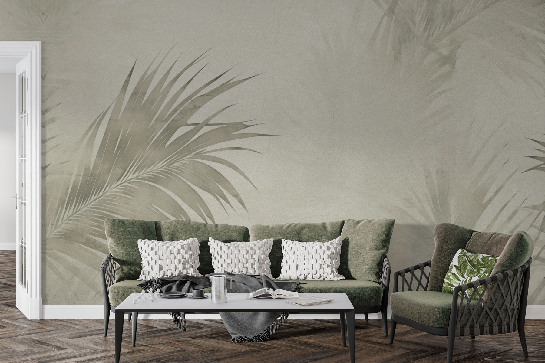 Trasformate qualsiasi stanza in una fuga tropicale con questo murale caratterizzato da morbide foglie di palma su un rilassante sfondo neutro. È come portare una fetta di paradiso a casa vostra! Immaginate di oziare con un libro, circondati da questo verde delicato, sorseggiando qualcosa di rinfrescante. Grazie ai colori sobri, si fonderà senza sforzo con l’arredamento esistente, offrendo un’atmosfera tranquilla senza attirare l’attenzione.