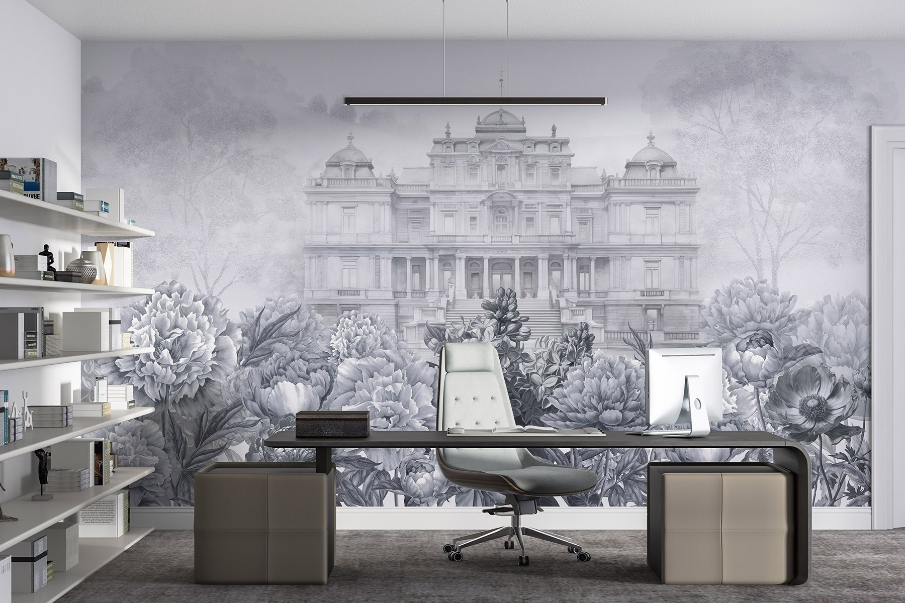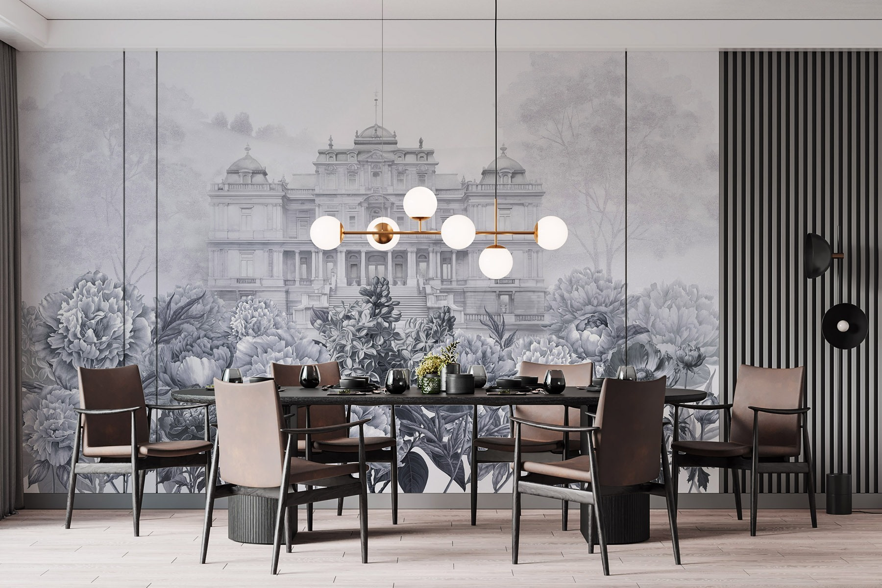 Entrate in un mondo in cui l’eleganza incontra la natura con questo splendido murale. Immaginate un grande edificio bianco che fa capolino attraverso un lussureggiante giardino di peonie e che invita a sognare un tè pomeridiano su una terrazza illuminata dal sole. Le morbide tonalità di grigio creano uno sfondo rilassante, perfetto per rilassarsi dopo una lunga giornata. Gli amici si fermeranno a metà conversazione, affascinati da questa bellezza unica. È come portare un assaggio di una tenuta europea nel vostro salotto, ma senza il prezzo elevato. Applicate questa bellezza su una parete attrezzata e guardate il vostro spazio fiorire!