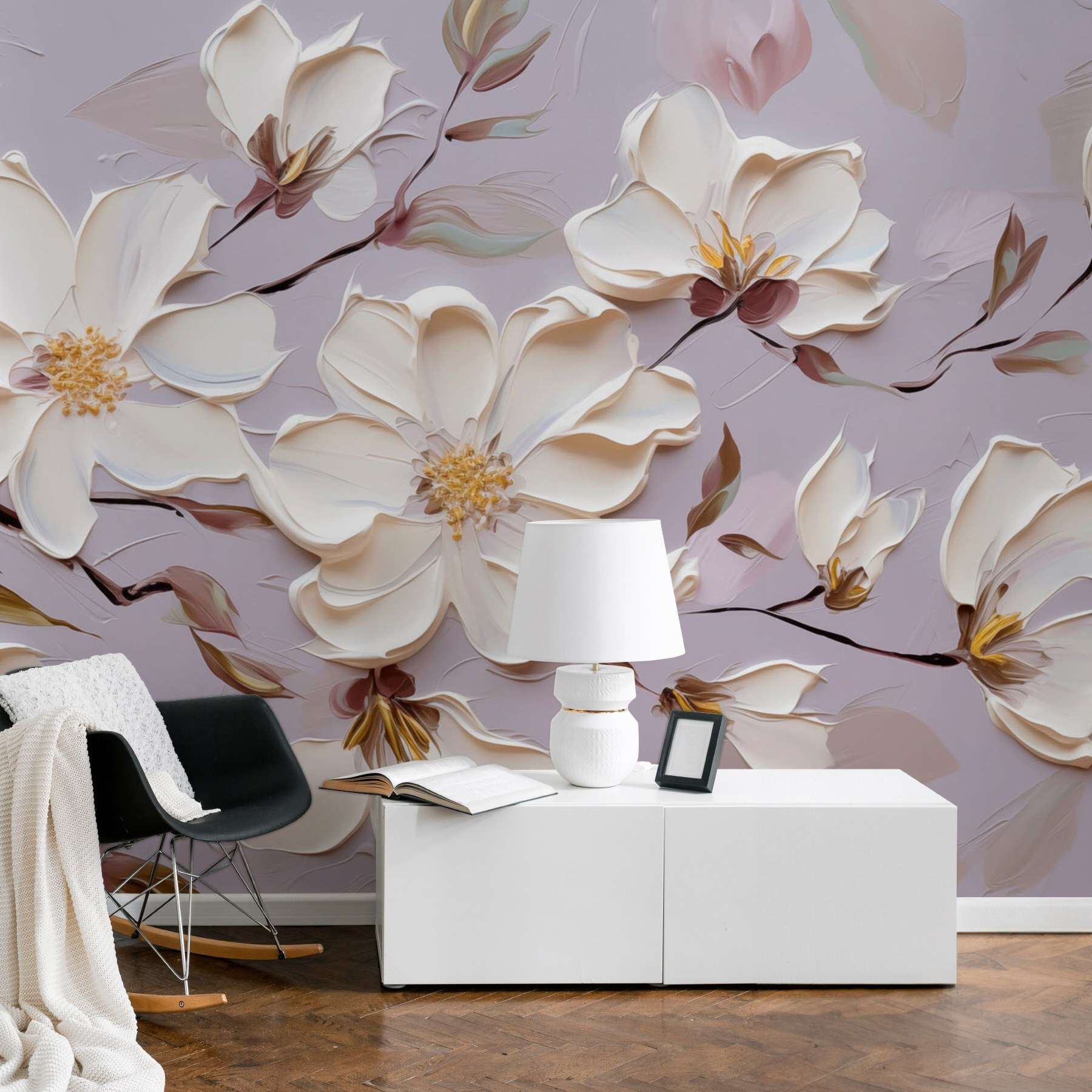 Trasformate qualsiasi stanza in un’incantevole fuga con questo murale caratterizzato da delicati fiori bianchi. Immaginate di entrare nel vostro spazio e di essere accolti da queste splendide fioriture, che sussurrano storie di serenità e grazia. Le tonalità tenui e i dettagli intricati evocano un senso di calma, quasi come una leggera brezza in una giornata calda. Perfetto per creare un accogliente angolo lettura o una camera da letto da sogno, è come portare un pezzo di natura in casa, senza il polline. Gli amici si stupiranno e voi potreste persino ritrovarvi a sognare a occhi aperti più a lungo del solito, persi nella bellezza del vostro rifugio floreale. Fate un passo in questa fantasia floreale e lasciate che il fascino si manifesti!