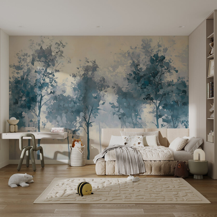 Immaginate una foresta serena in cui gli alberi si ergono alti, silenziosamente avvolti dalla nebbia. Questo murale, “Gruppo di alberi nella nebbia”, cattura perfettamente quel momento magico. I blu tenui e i verdi delicati si fondono senza soluzione di continuità, creando uno sfondo da sogno che rasserena l’anima. È come portare una fetta di natura in casa senza bisogno di annaffiare. Immaginatelo in un accogliente angolo lettura, dove rifugiarsi con un libro e una tazza di tè caldo. Ogni sguardo sembra un rifugio tranquillo, che trasforma ogni spazio in un’oasi di pace, senza bisogno di scarponi da trekking. Perfetto per gli amanti della natura o per chiunque desideri un po’ di tranquillità nella propria casa.