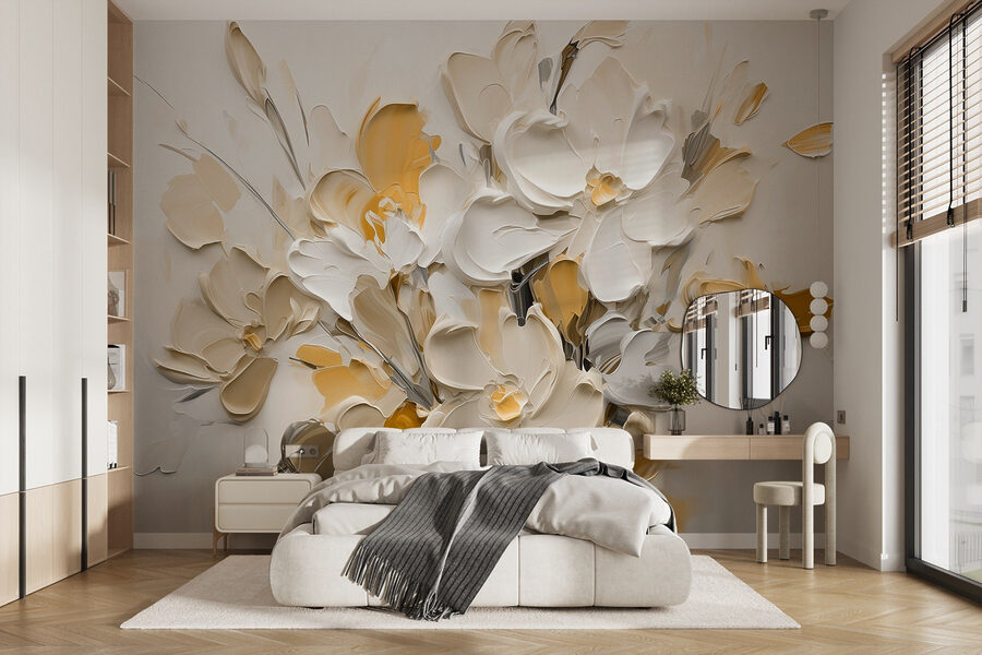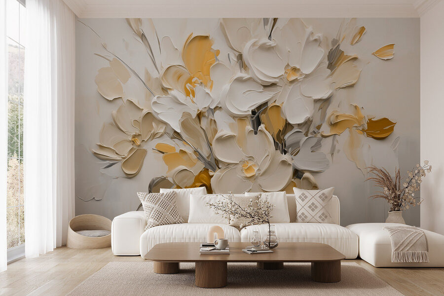 Trasformate il vostro spazio con questo delizioso murale di fiori in vaso. È come portare un giardino in casa senza preoccuparsi di annaffiare! Le morbide tonalità del crema e del giallo aggiungono calore, facendovi sentire come in un accogliente abbraccio ogni volta che passate di lì. Immaginate di sorseggiare il vostro caffè mattutino mentre questi fiori vi guardano allegramente: una piccola dose quotidiana di serenità. Perfetto per quella parete noiosa che ha bisogno di un po’ di amore o come sfondo allegro per le riunioni. Non è solo un oggetto d’arredamento, è un elemento che risolleva l’umore, un promemoria quotidiano del fatto che la bellezza della natura può illuminare qualsiasi stanza.