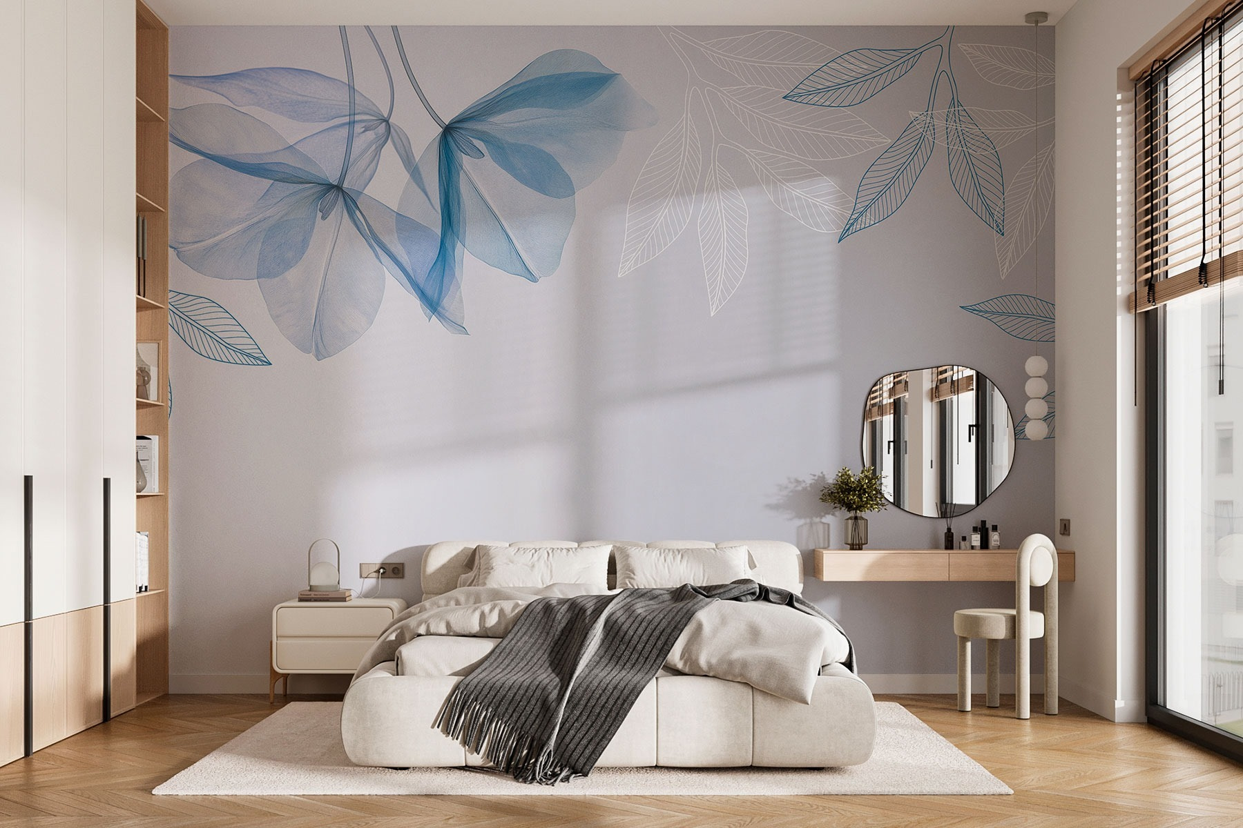 Trasformate una parete semplice in una fuga serena con questo murale con foglie blu e bianche. È come invitare una leggera brezza all’interno dell’abitazione, sussurrando i segreti dei grandi spazi aperti. Immaginate un angolo accogliente, una tazza di tè fumante e questo murale che crea l’atmosfera perfetta: non è un sogno?