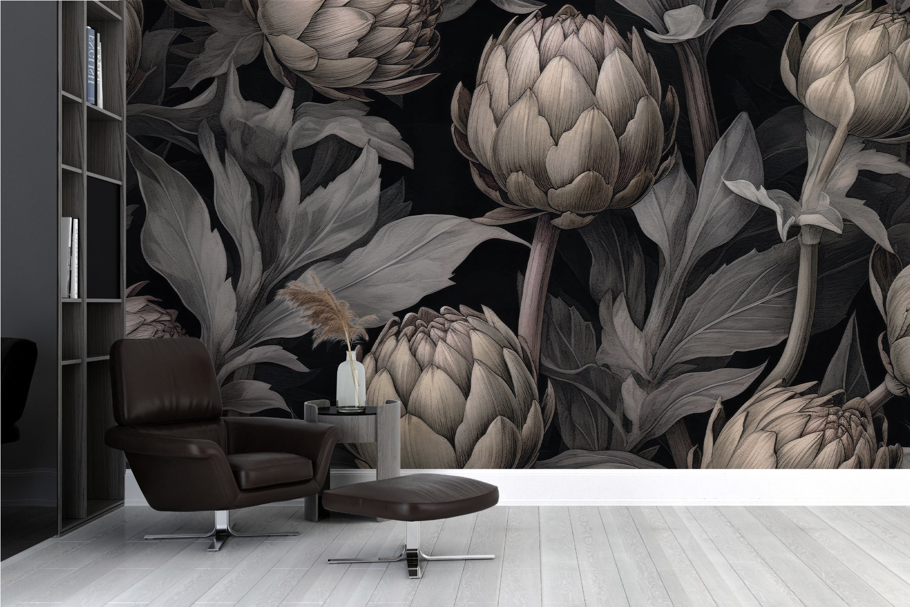Trasformate il vostro spazio con questo splendido murale con carciofi e foglie che danzano su un elegante sfondo nero. È come avere un’elegante parete da giardino che illumina istantaneamente qualsiasi stanza. Immaginatevi gli amici che vengono a trovarvi e improvvisamente la parete ruba la scena: tutti guardano quei carciofi meravigliosamente dettagliati, quasi come se sentissero il profumo della terra di un raccolto fresco. È un’opera sofisticata ma accogliente, perfetta per un salotto o anche per una cucina. Chi avrebbe mai immaginato che i carciofi potessero creare un’atmosfera così affascinante? Aggiungete un tocco di natura alla vostra casa senza dover ricorrere alla manutenzione!