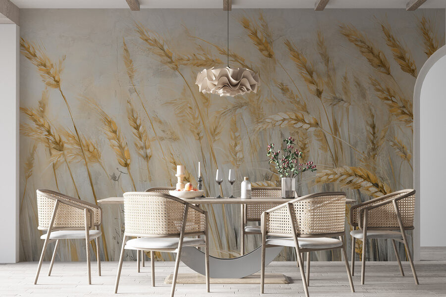 Trasformate il vostro spazio con uno splendido murale che ritrae un campo di grano che ondeggia dolcemente nella brezza. Questo pezzo aggiunge un tocco di bellezza della natura, portando un’atmosfera calda e terrena in ogni stanza. Immaginate di sorseggiare il vostro caffè mattutino con la sensazione di trovarvi in un campo infinito e dorato, con il sole che vi bacia le guance. È il tipo di murale che fa sentire le pareti vive, facendo sognare picnic e pomeriggi pigri. Perfetto per un salotto accogliente o una camera da letto serena, questo murale invita a un senso di calma e gioia, ricordando a tutti che la natura è a portata di sguardo.