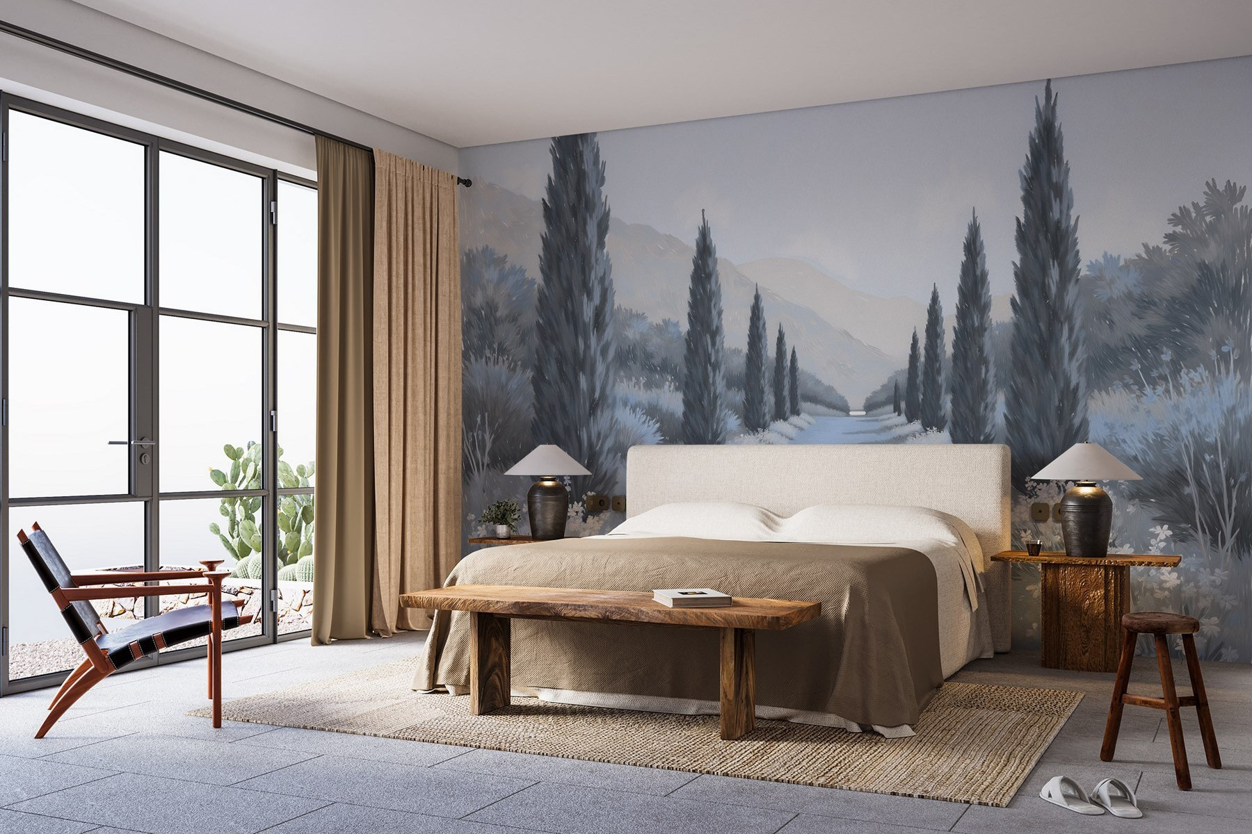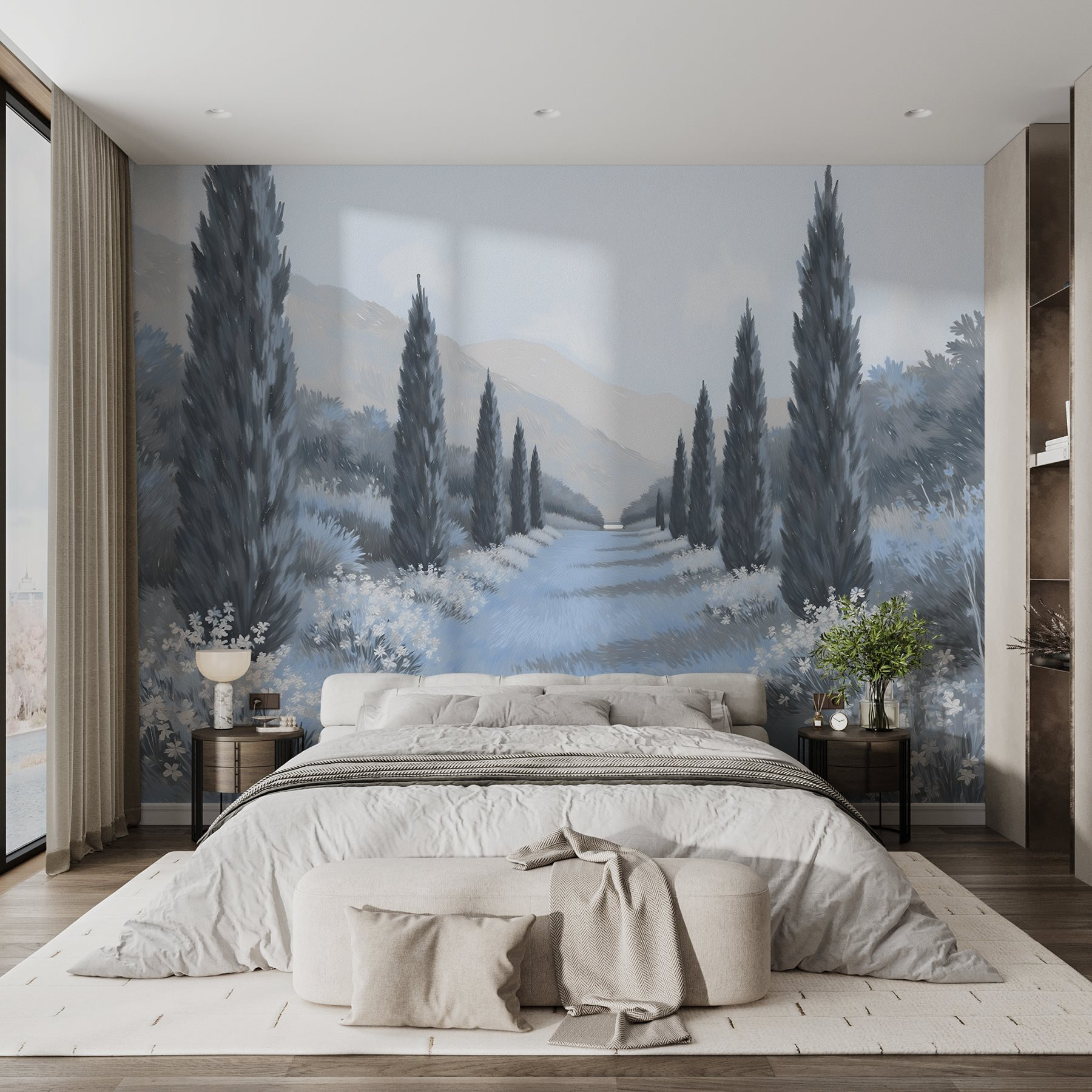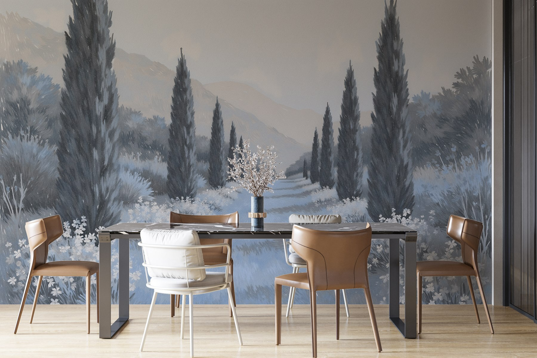 Trasformate il vostro spazio con questo accattivante murale, “Paesaggio con alberi e fiori”. Immaginate di addentrarvi in un sentiero sereno costeggiato da alti cipressi e fiori delicati che sussurrano i segreti della natura. Le tonalità tenui creano un’atmosfera rilassante, perfetta per rilassarsi dopo una lunga giornata. È come portare una boccata d’aria fresca in casa, senza gli insetti!