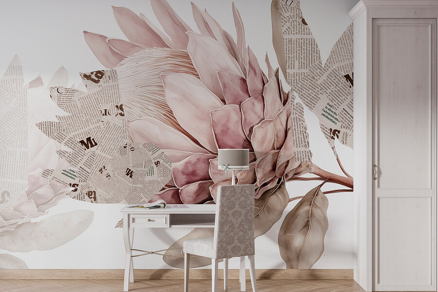 Portate un tocco di natura in casa con questo incantevole murale con deliziose fioriture intrecciate a elementi di giornale. È come un mix tra una festa in giardino e una galleria d’arte, tutto sulla vostra parete. Immaginate di sorseggiare un caffè mentre ammirate come i morbidi petali danzano con il testo in grassetto, stimolando conversazioni e magari un po’ di sogni ad occhi aperti. Questo murale può trasformare qualsiasi stanza in un angolo accogliente e vivo, ma allo stesso tempo elegante. Sussurra all’anima, invitando al calore e a un pizzico di fantasia. Perfetto per gli spazi che desiderano un tocco di personalità e fascino, è un dolce promemoria del fatto che la bellezza può essere trovata in luoghi inaspettati.