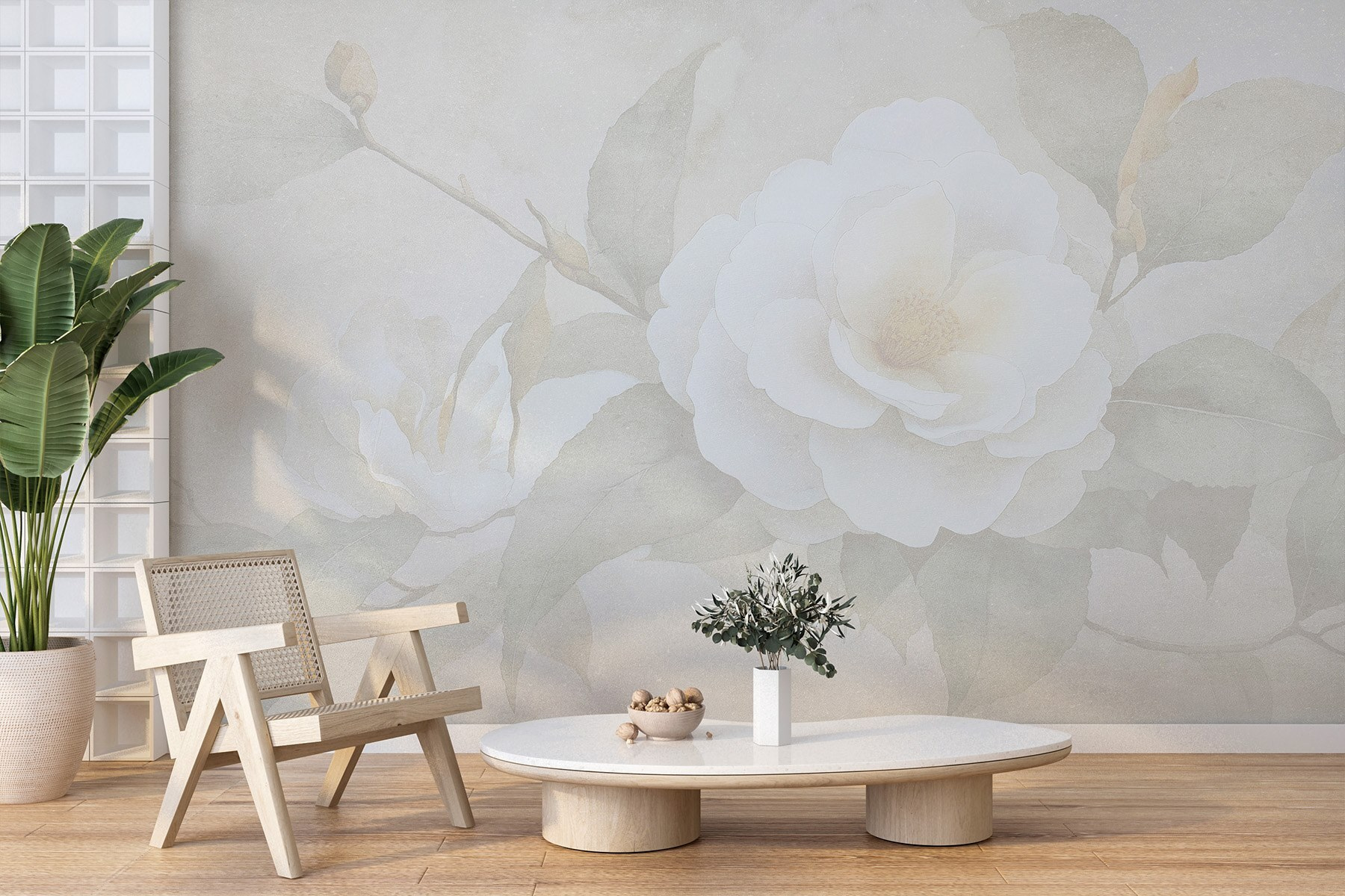 Trasformate il vostro spazio con il fascino rilassante del murale “White Flower with Green Leaves”. Questo disegno porta un tocco di natura all’interno, facendo sentire ogni giorno come una dolce passeggiata in un giardino fiorito. Immaginatevi un pomeriggio di sole, il vostro libro preferito in mano e questo splendido murale come sfondo accogliente. Il bianco e il verde tenui creano un’atmosfera serena che migliora immediatamente qualsiasi stanza. È come una boccata d’aria fresca, senza starnuti! Perfetto per il soggiorno o la camera da letto, questo murale invita a un tocco di tranquillità nella vita quotidiana. Inoltre, è un favoloso spunto di conversazione quando gli amici vengono a trovarci. Preparatevi a stupirli!