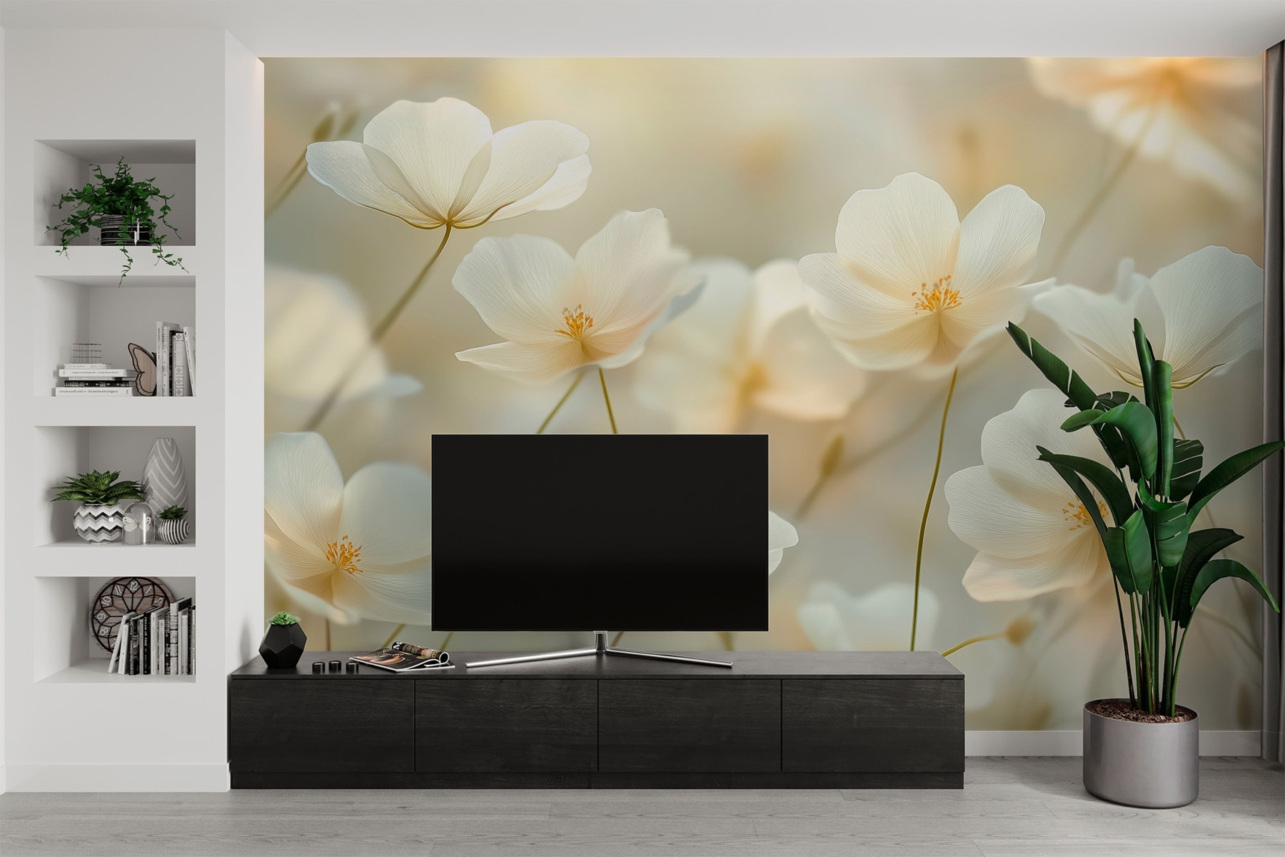 Trasformate qualsiasi spazio con questo grazioso murale caratterizzato da un tenero gruppo di fiori bianchi. Immaginate di entrare in una stanza e di sentirvi immediatamente più tranquilli, come se aveste passeggiato in un giardino sereno. I toni delicati e le graziose fioriture aggiungono un tocco di eleganza senza opprimere. È come avere la primavera a casa, senza bisogno di annaffiare! Perfetto per un accogliente angolo lettura o una luminosa zona pranzo, questo murale invita al calore e alla tranquillità. Gli amici vi chiederanno sicuramente dove avete trovato un pezzo così affascinante. Sono i piccoli dettagli a fare la differenza. Elevate il vostro arredamento di un pizzico, perché chi non ha bisogno di un tocco di magia floreale?