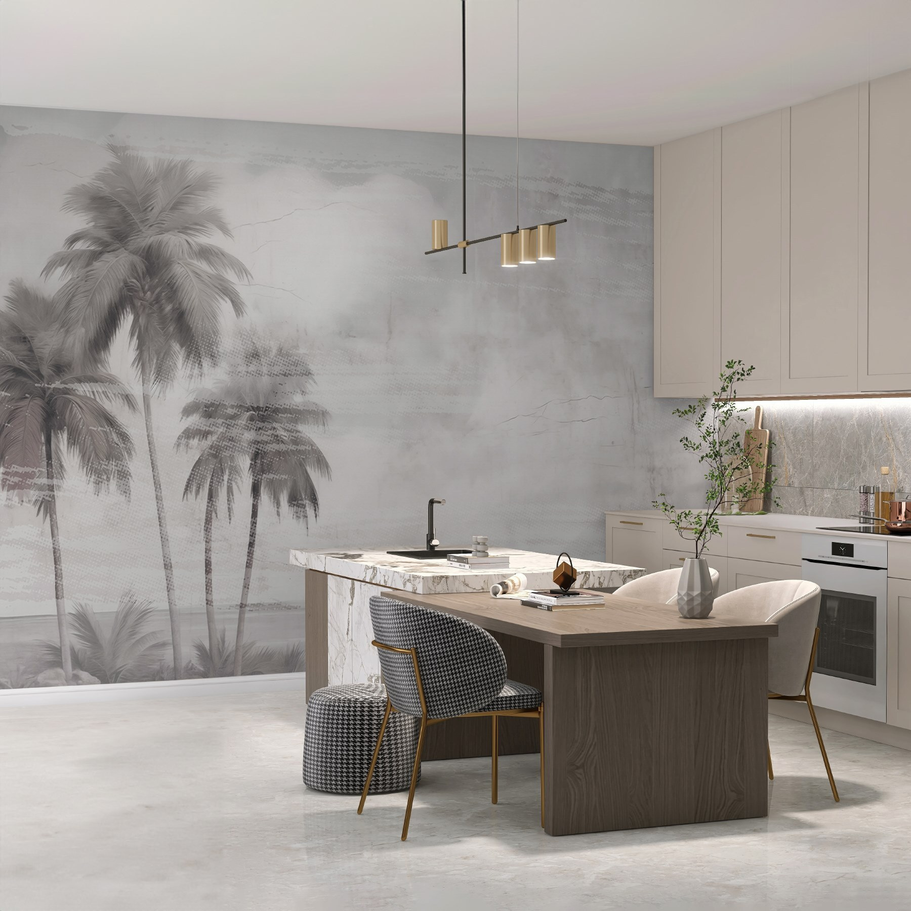 Trasformate il vostro spazio in una fuga tropicale con questo splendido murale che raffigura un sussurro di palme che ondeggiano elegantemente su uno sfondo morbido. Immaginate il dolce fruscio delle foglie, la calda brezza e il dolce profumo tropicale. È perfetto per una stanza che ha bisogno di un po’ di atmosfera vacanziera, come un angolo di lettura o un ufficio. Gli amici potrebbero entrare e dire: “Wow, siamo su un’isola?”. Basta un pizzico di avventura e relax per rallegrare la giornata. Inoltre, è come portare una fetta di paradiso direttamente a casa vostra. Semplicemente mozzafiato!