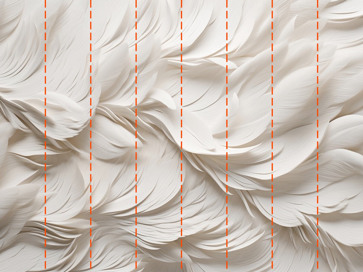 La carta da parati verrà preparata in base alle dimensioni fornite durante il processo d’ordine. La tela sarà suddivisa in comode sezioni, ciascuna larga fino a 50 cm.