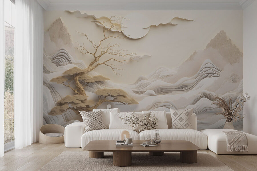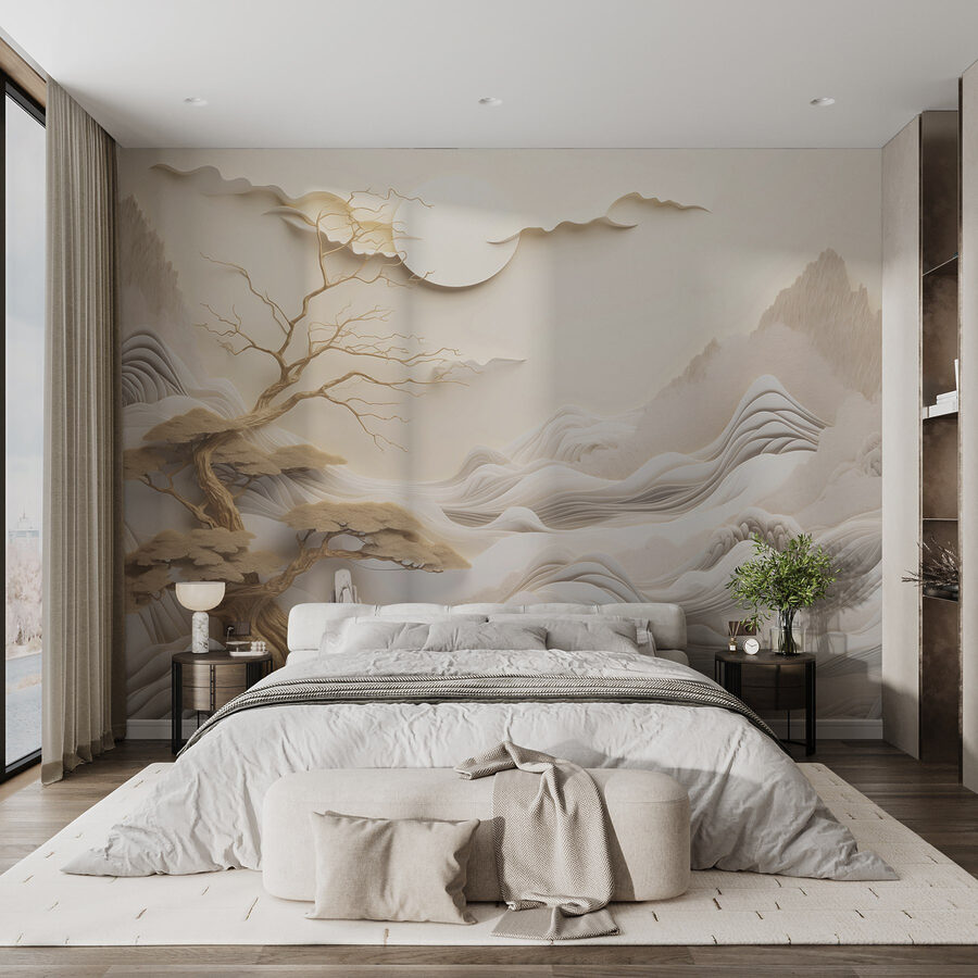 Trasformate qualsiasi stanza in un rifugio tranquillo con questo splendido murale che raffigura un albero, montagne, nuvole e un grande sole. È come portare una serena vista sulle montagne all’interno dell’abitazione, senza dover affrontare un’escursione. Immaginate di sorseggiare un caffè mentre vi immergete nel tenue bagliore del sole che fa capolino tra le montagne. Perfetto per un salotto o per un accogliente angolo di lettura, è un argomento di conversazione che porterà gli ospiti a riflettere sui misteri della vita. Inoltre, i toni tenui creano un’atmosfera tranquilla, che rende facile rilassarsi: chi non vorrebbe un po’ di abbraccio della natura? Sinceramente, questo murale è lo sfondo migliore per le domeniche pigre o per le feste da ballo spontanee.
