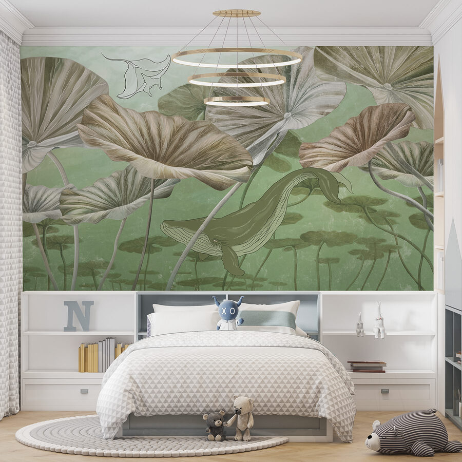 Immergetevi nelle vibrazioni serene di questo splendido murale con una graziosa balena che scivola in acque tranquille. Immaginate il vostro spazio trasformato in un paradiso sottomarino, dove ogni sguardo sembra una fuga tranquilla. Il verde tenue e i toni della terra non solo calmano i sensi, ma invitano anche all’esterno, creando un’atmosfera rilassata. Perfetto per gli amanti della natura o per chiunque abbia bisogno di un tocco di calma, questo murale aggiunge uno strato d’arte che invoca curiosità e meraviglia. È come avere un pezzetto di oceano, proprio a casa, senza bisogno di acqua salata. La dolce presenza della balena illumina senza sforzo una stanza, stimolando conversazioni e sogni ad occhi aperti. Allora, perché non lasciare che questa splendida vita marina porti un senso di avventura sulle vostre pareti?