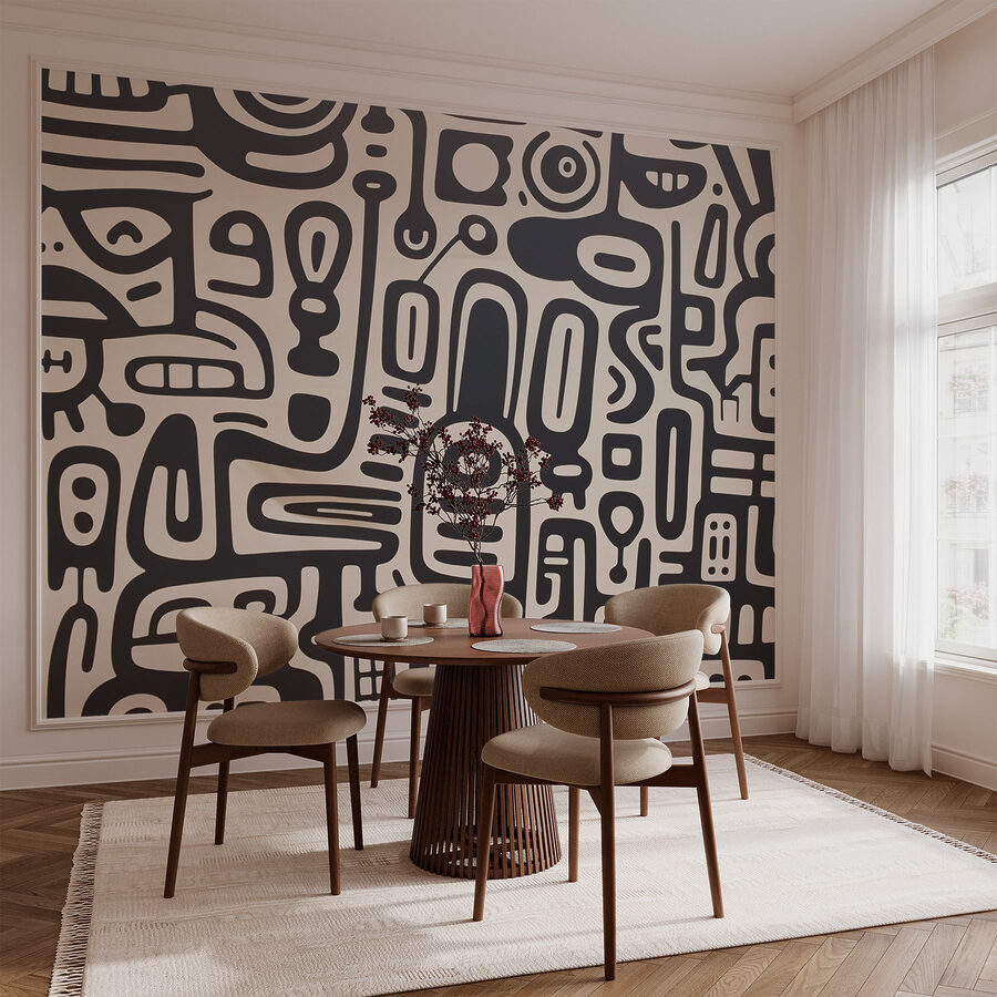 Tuffatevi in un mondo di eccentrica creatività con questo murale in bianco e nero. È come se la vostra parete avesse deciso di indossare un abito elegante: forme audaci e linee ritmiche danzano su una tela pulita, trasformando qualsiasi spazio in una galleria personale. Immaginate di sorseggiare un caffè e di rilassarvi mentre i vostri occhi tracciano curve e angoli giocosi. È un elemento di conversazione, che sicuramente scatenerà dibattiti sulle interpretazioni dell’arte o forse anche risate. Perfetto per quella parete vuota che chiede personalità, questo murale conferisce un’atmosfera moderna, senza rinunciare a essere cool e senza sforzarsi troppo. È il giusto mezzo tra l’eccentrico e lo chic, proprio quello di cui ogni casa ha bisogno per dare un calcio alla noia.