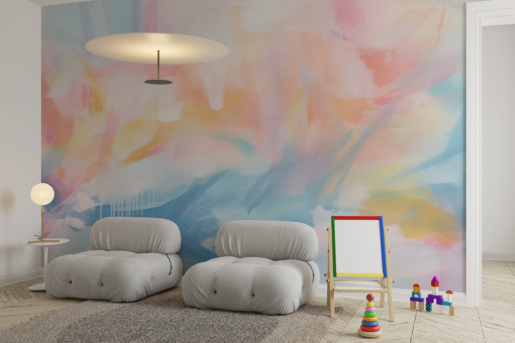 Immaginate di entrare in una stanza che sembra un delizioso cielo mattutino, dove ogni sfumatura di blu, rosa e pesca danza sulle pareti. Questo murale dona un tocco di estrosità e gioia a qualsiasi spazio, proprio come una leggera brezza in una giornata di sole. Immaginatelo mentre incornicia il vostro angolo di lettura preferito o come sfondo stravagante per le riunioni di famiglia. Non si limiterà a rimanere lì: è come un amico che porta con sé tutte le buone vibrazioni. Ogni sguardo a quest’opera d’arte potrebbe scatenare un piccolo sogno a occhi aperti, facendovi vivere delle mini-avventure senza mai uscire di casa. È anche un perfetto spunto di conversazione, con la gente che si ferma ad ammirare le sue tinte serene. Trasformate le vostre pareti e lasciate che la vostra casa racconti una storia colorata.