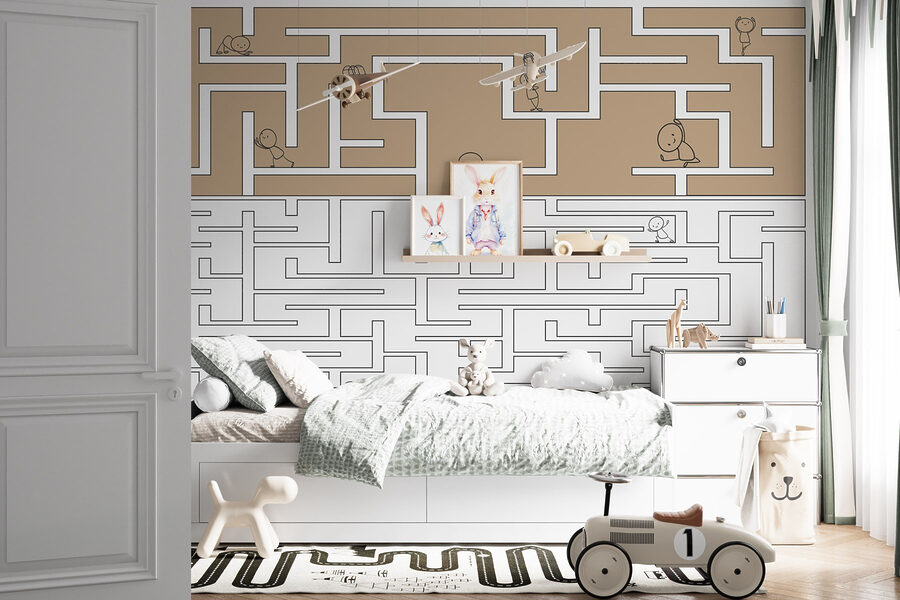 Date un’atmosfera giocosa a qualsiasi spazio con questo affascinante murale che raffigura una scena di gioco del labirinto. Immaginate piccole figure che si aggirano tra curve e tornanti, ognuna impegnata in una mini-avventura tutta sua. Perfetto per i bambini (e per i più giovani), stimola la creatività e l’immaginazione. Immaginate un bambino che punta entusiasta il murale, perso nella ricerca della via d’uscita. I colori sono caldi e invitanti e conferiscono un’atmosfera accogliente alla stanza. Non è solo una decorazione, è un parco giochi per la mente! Perfetto per una cameretta o una stanza dei giochi, intratterrà i piccoli esploratori per ore. Che il divertimento abbia inizio!