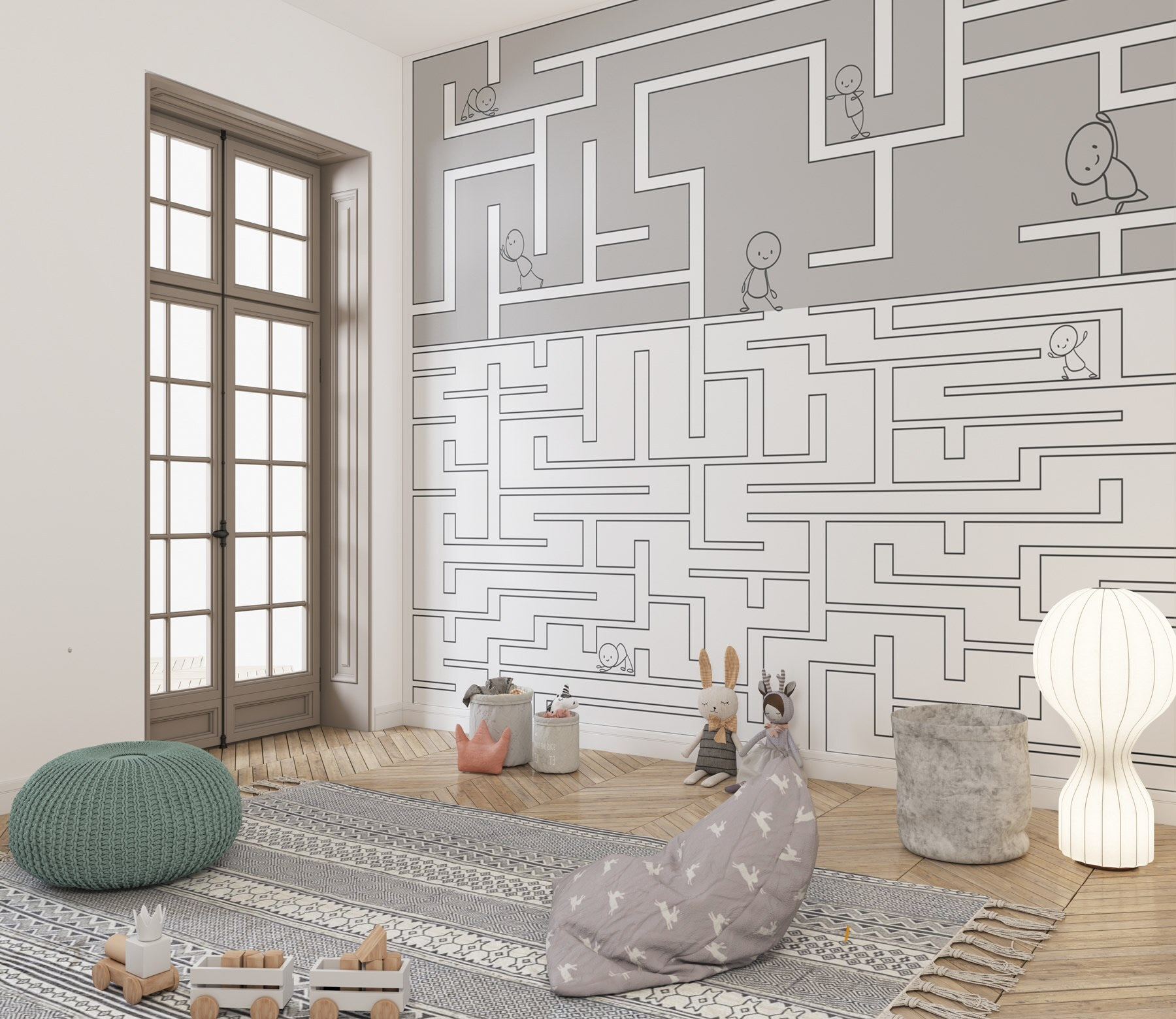 Trasformate qualsiasi stanza in un’avventura giocosa con questo stravagante murale che raffigura un gioco del labirinto e allegri personaggi dei cartoni animati che si fanno strada. Immaginate i bambini ridere e indicare mentre seguono le piccole figure nei loro piccoli viaggi. Questo murale invita al gioco immaginativo e mantiene la loro mente in fermento per la curiosità, rendendolo perfetto per la cameretta o la stanza dei giochi. Osservare i piccoli che si cimentano con il murale stimola la creatività e anche un po’ di competizione amichevole. Chi riesce a trovare la strada più veloce? Non è solo una decorazione, è un’esperienza che aspetta di essere vissuta.