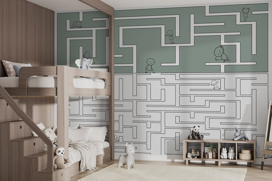 Trasformate lo spazio di un bambino in un’avventura giocosa con questo stravagante murale con un gioco del labirinto e allegri personaggi dei cartoni animati. Immaginate i più piccoli mentre tracciano con le dita i percorsi e fingono di guidare il loro cammino attraverso ogni sorta di divertente fuga. La palette di colori tenui mantiene la calma, mentre il design dinamico del labirinto stimola la curiosità. Non si tratta solo di arredamento, ma di uno sfondo per il gioco immaginativo e la narrazione. Perfetto per le camerette o le stanze dei giochi, questo murale invita a ridere, a essere creativi e a competere in modo amichevole. Guardate come i bambini si perdono nel divertimento!
