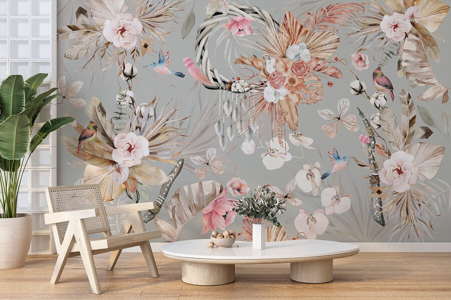 Trasformare uno spazio è facile come aggiungere questo murale, la “Carta da parati con fiori e piume”. È come portare un giardino in casa, senza l’annaffiatoio. Con fiori soffici e piume delicate che danzano su uno sfondo rilassante, potrebbe far dimenticare per un attimo le faccende domestiche. Immaginate di sorseggiare un tè, accoccolati con un libro, mentre i vivaci uccelli svolazzano sopra di voi: è praticamente una mini vacanza. Perfetto per un soggiorno o una camera da letto da sogno, questo murale invita alla calma e alla creatività. Conferisce alle vostre pareti una personalità fresca che fa sì che ogni ospite si fermi e dica: “Wow, dove l’hai preso?”. Dopo tutto, gli spazi dovrebbero sentirsi vivi.