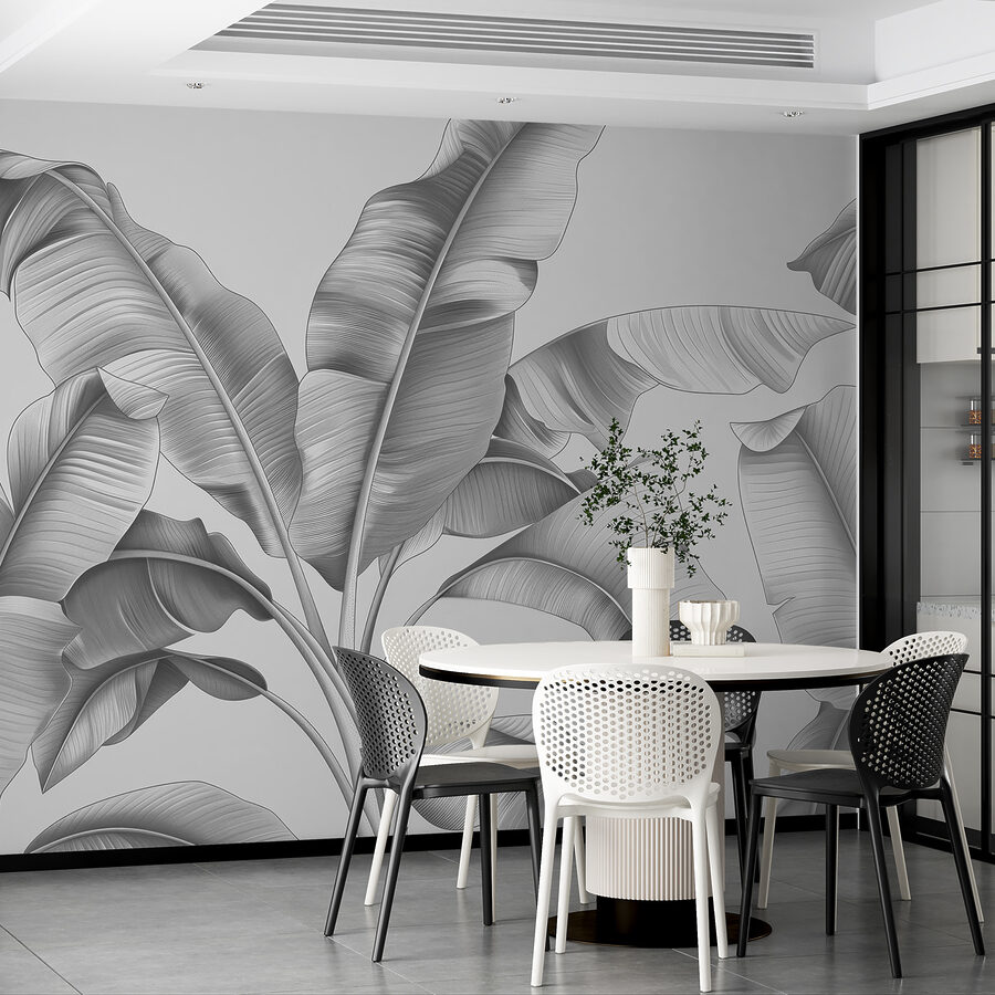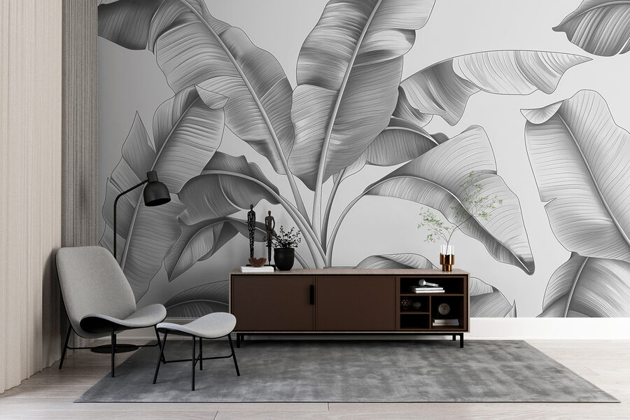L’atmosfera in scala di grigi lo rende versatile per quasi tutti gli ambienti, dal soggiorno moderno alla camera da letto. Inoltre, l’effetto 3D aggiunge così tanta profondità che potreste allungare la mano per toccare le foglie! Davvero, c’è qualcosa di così rilassante nell’essere circondati dal fogliame – a parte l’innaffiatura e gli insetti, ovviamente.