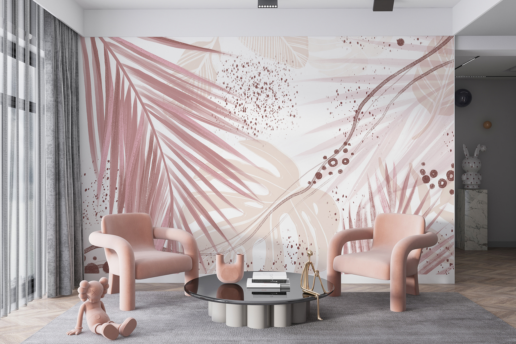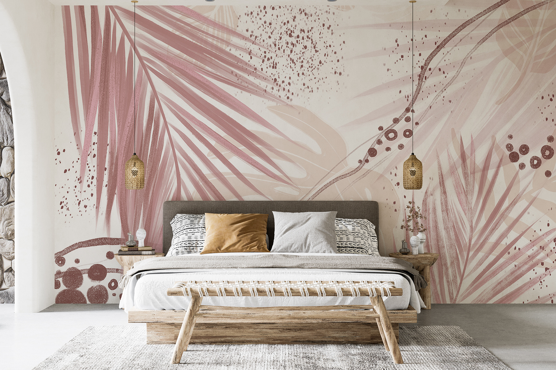 Le intricate foglie di palma e i motivi astratti mescolati con i rosa tenui e le tonalità della terra… è il sogno di ogni amante della natura! È perfetto per aggiungere un tocco di stile al soggiorno, alla camera da letto o anche all’ufficio di casa. Cos’è la vita senza un tocco di creatività? Ogni volta che si entra nella stanza, è come se si ricevesse un dolce abbraccio da Madre Natura, una piccola fuga dalla frenesia quotidiana.