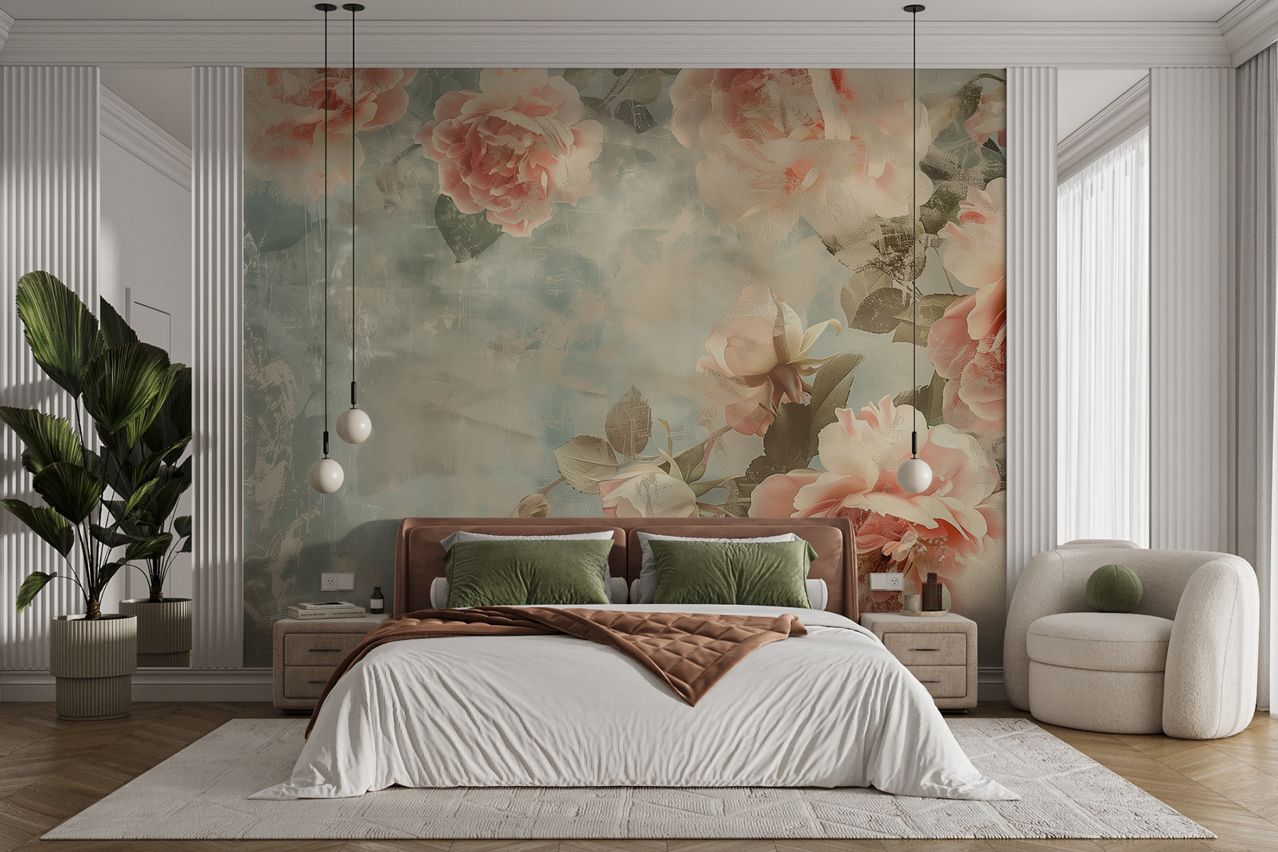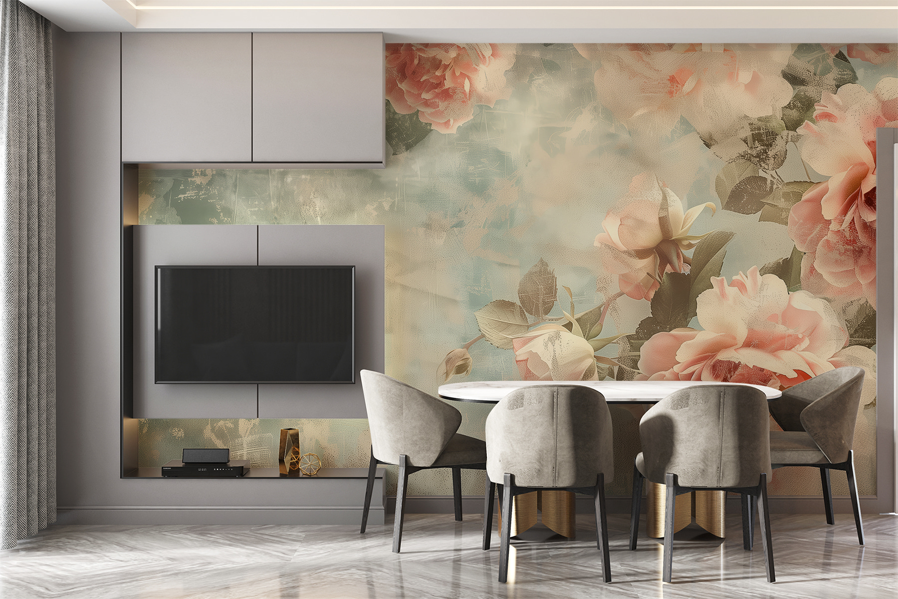 Guardate esattamente come apparirà il vostro spazio con la nuova carta da parati prima di acquistarla. Visualizzazione professionale da parte di designer esperti senza alcun costo o obbligo di acquisto.