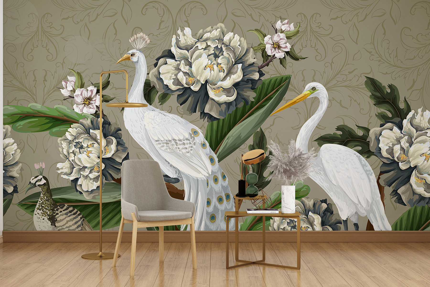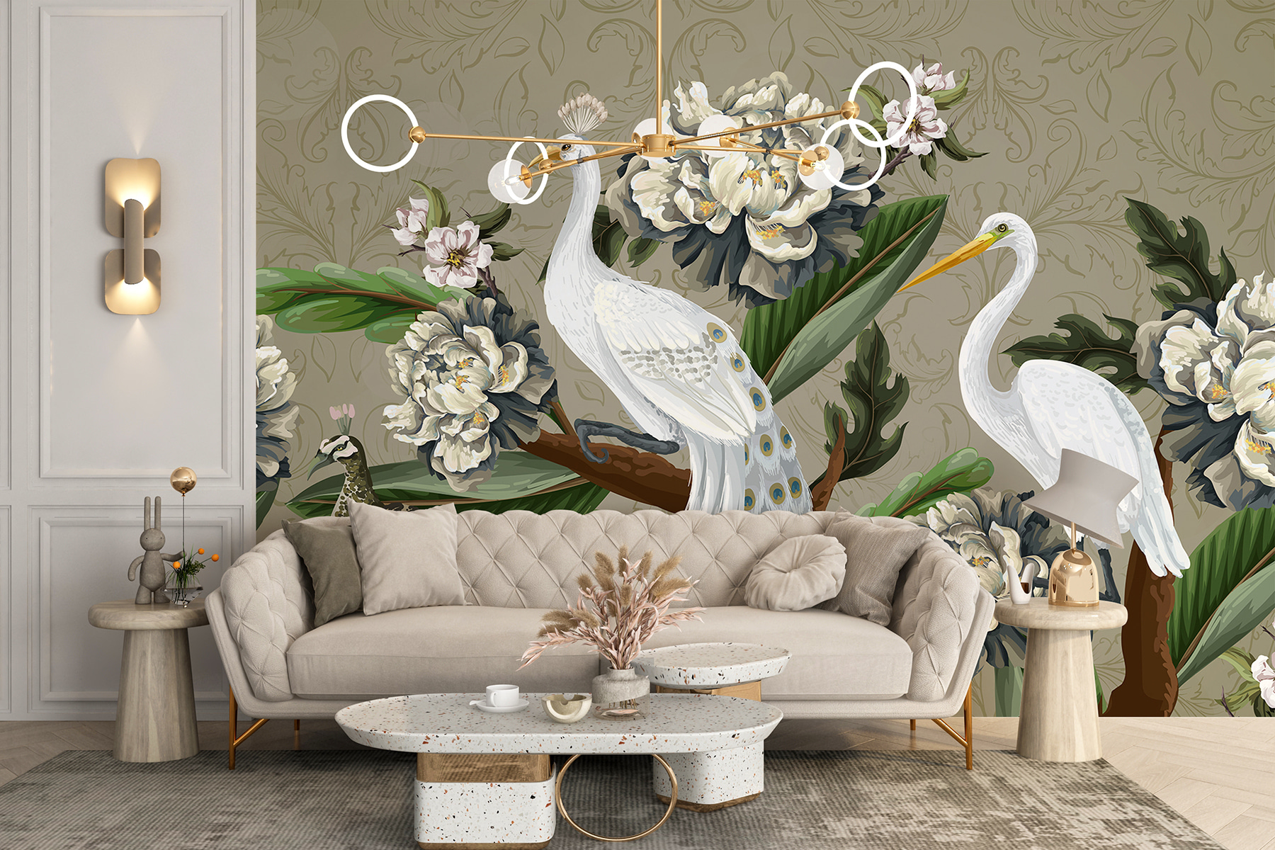 Immaginate l’eleganza rilassata di questo murale: le vostre pareti raccontano la storia sognante di un tranquillo rifugio botanico. È l’ideale per chi ama la natura ma apprezza anche un tocco di raffinatezza. I pavoni e i fiori sono così dettagliati che vi sembrerà di passeggiare in un giardino esotico. Perfetto per creare il fattore “wow” quando gli amici vengono a trovarci: la conversazione sarà sicuramente accesa!