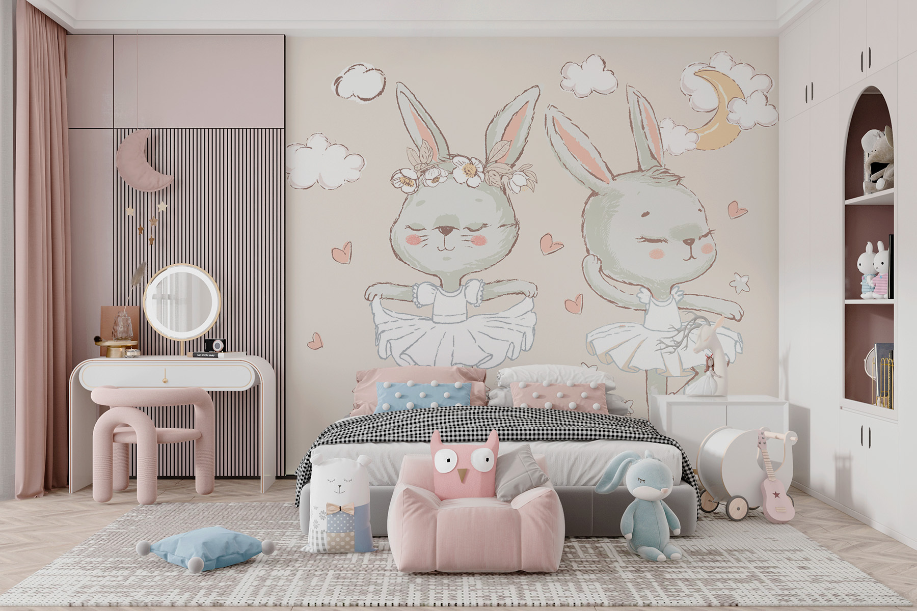 Cercate un murale che sia pura magia? Ecco “Carta da parati w08008”. Immaginate questi adorabili coniglietti ballerini che volteggiano sulle vostre pareti! È come una danza sognante di soffici nuvole, cuori giocosi e una tenera luna, il tutto racchiuso in un unico elemento, perfetto per un’accogliente cameretta o per uno spazio abitativo stravagante. Immaginatevi una pigra domenica mattina, con la luce del sole che entra e voi che sorseggiate il vostro caffè con un sorriso, guardando queste affascinanti creature che si divertono. Non è solo arte, è un fascino accattivante che vi farà sciogliere il cuore ogni volta che lo vedrete. Ideale per gli amanti degli animali, per chi sogna ad occhi aperti o per chiunque abbia bisogno di un po’ di estro nella propria vita, questo murale trasformerà qualsiasi stanza in un delizioso sogno ad occhi aperti.