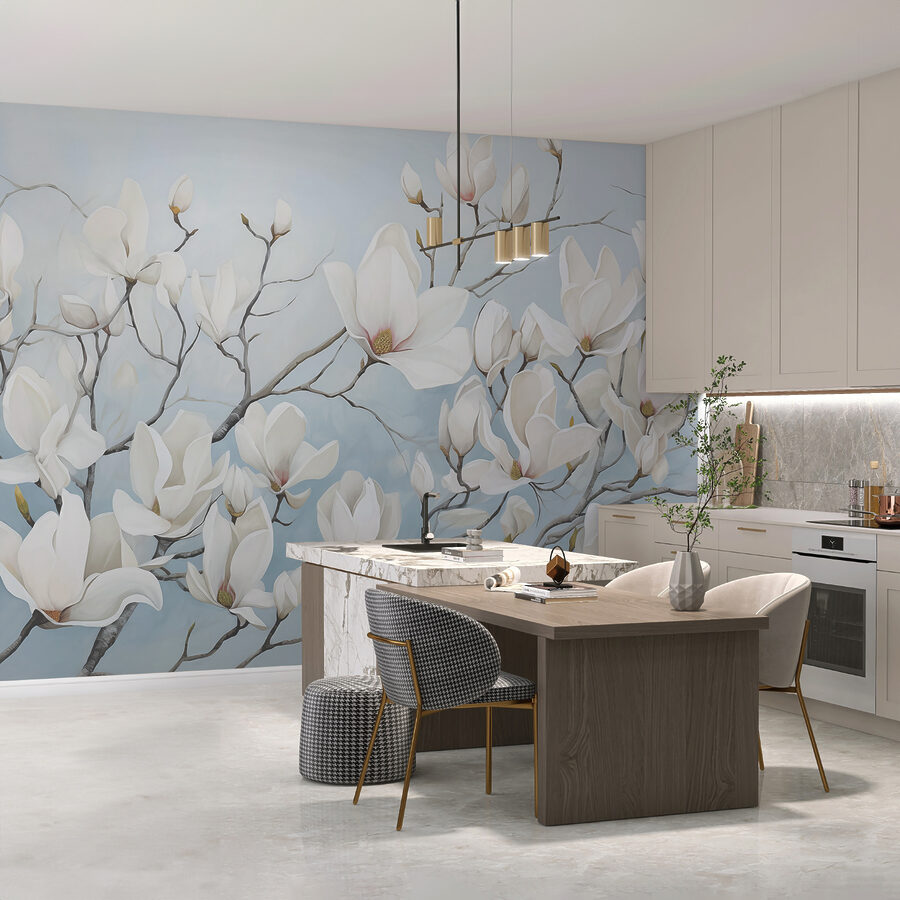 “Murales w08125” è come avere un pezzo di primavera eterna proprio nel vostro spazio vitale. Immaginate di svegliarvi ogni giorno con quel vortice sognante di magnolie, con quei petali delicati in bianco tenue e rosa crema su uno sfondo sereno. È quasi come entrare in un giardino fiorito, dove ogni ramo e fiore invita alla calma e a un tocco di fantasia.