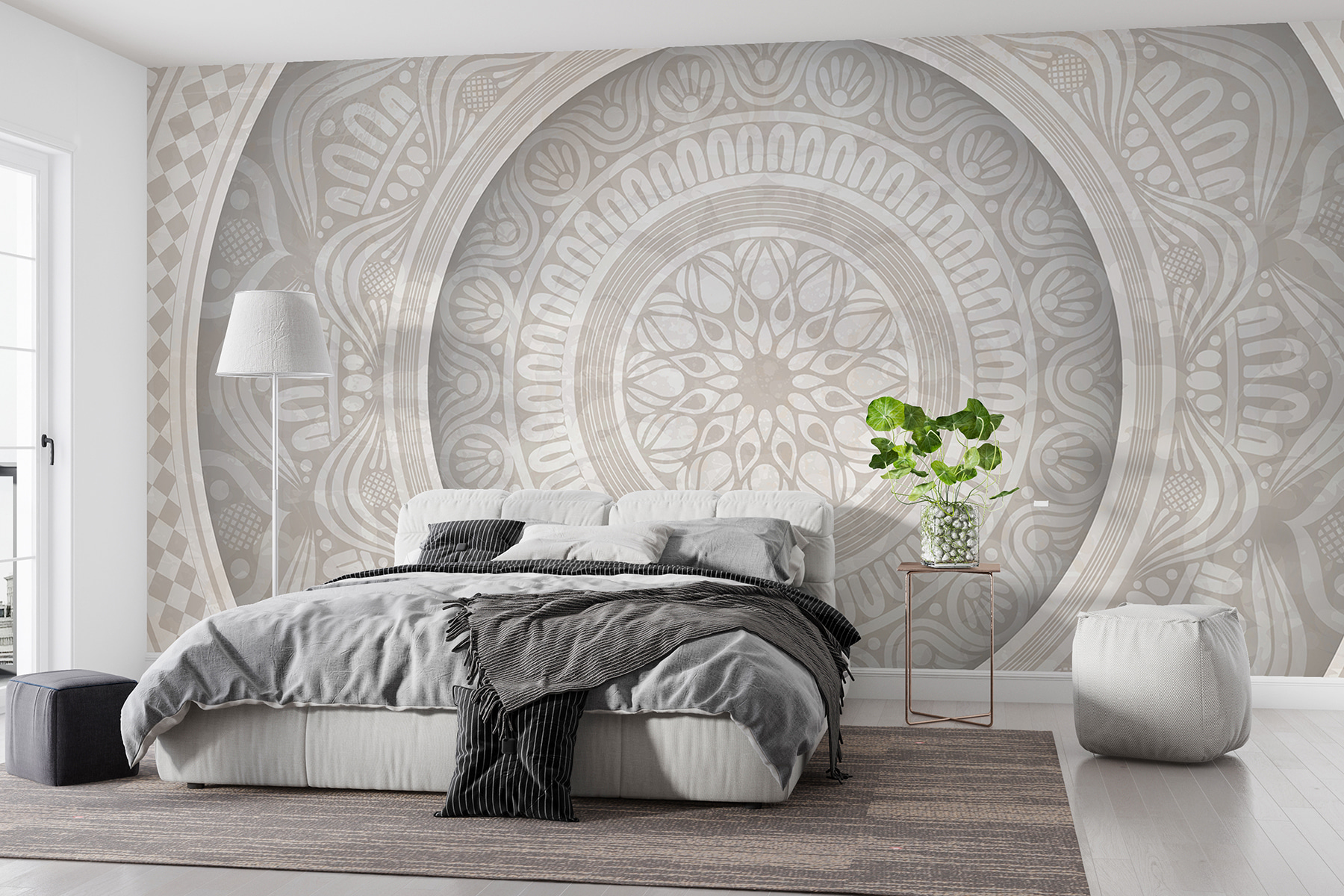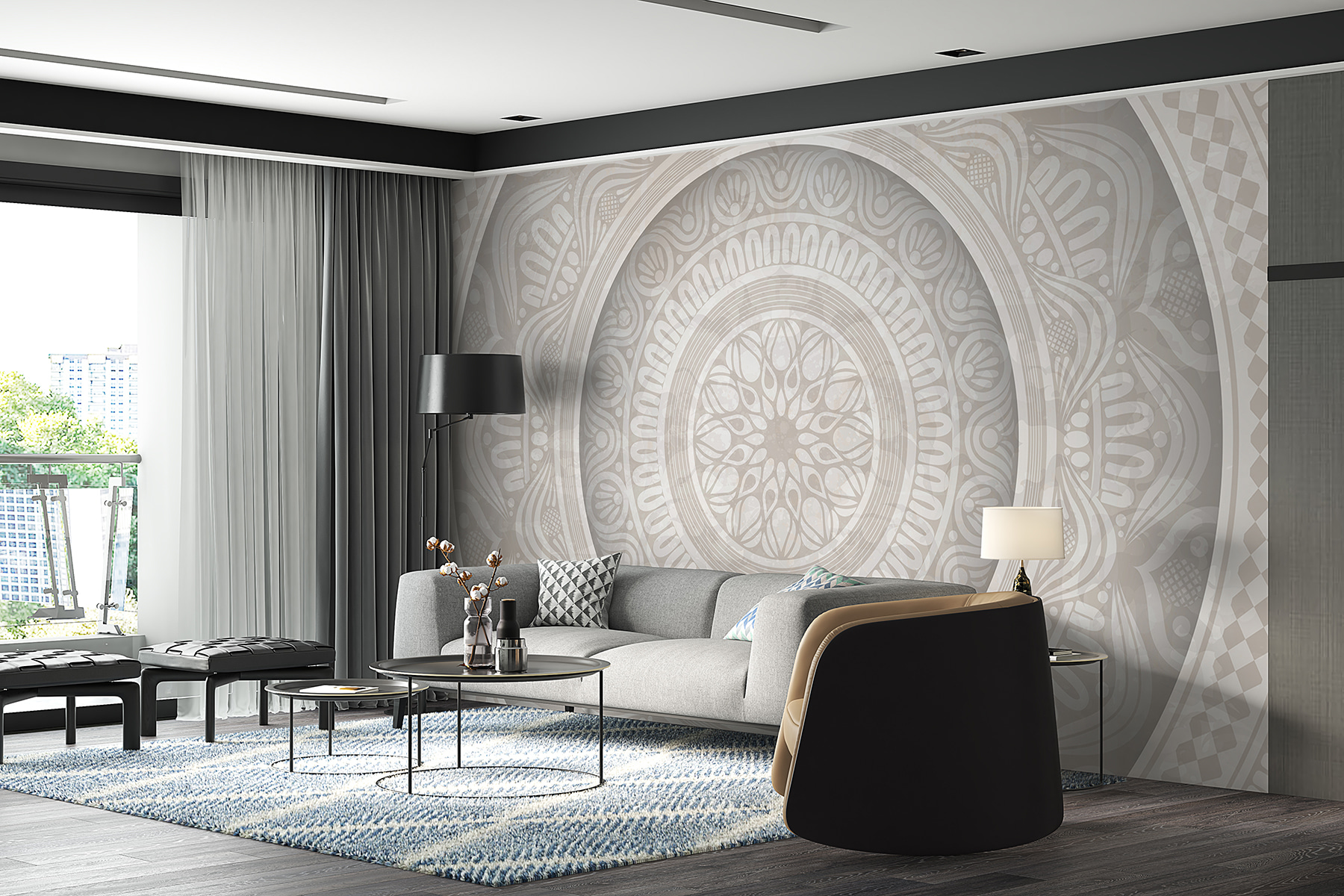 Carta da parati Motivo circolare su superficie bianca (SKU: w08182)