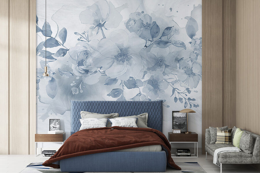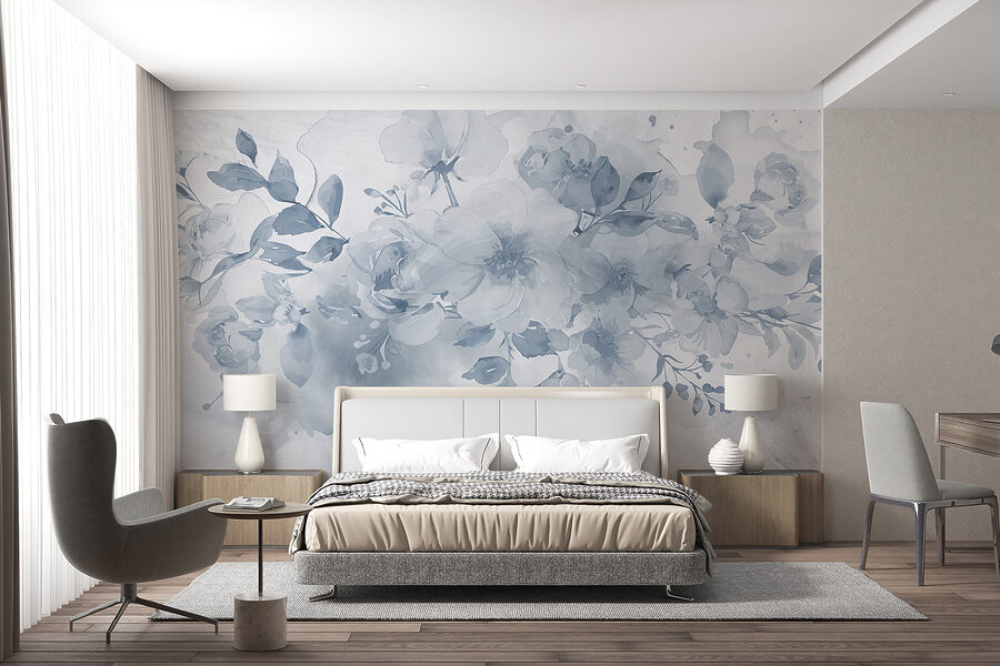 Certo che sì! Immaginate di entrare in una stanza e di essere accolti da questo murale: semplicemente stupendo, vero? Voglio dire, guardate quei fiori morbidi e sognanti! È come se un acquerello baciasse la vostra parete. Riuscite già a sentire la serenità? Perfetto per creare uno spazio calmo e invitante, sia che si tratti di un salotto accogliente o di una camera da letto serena.