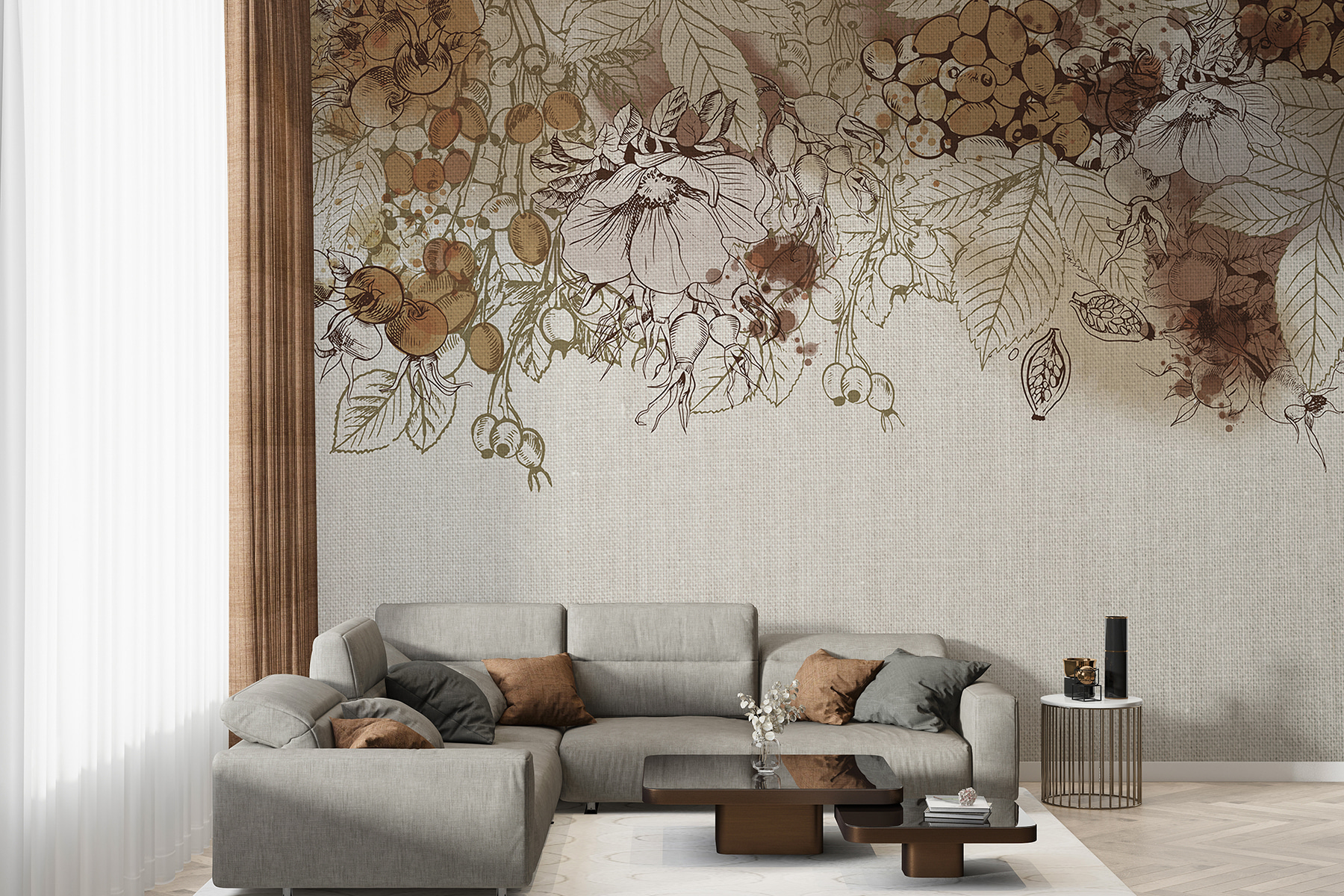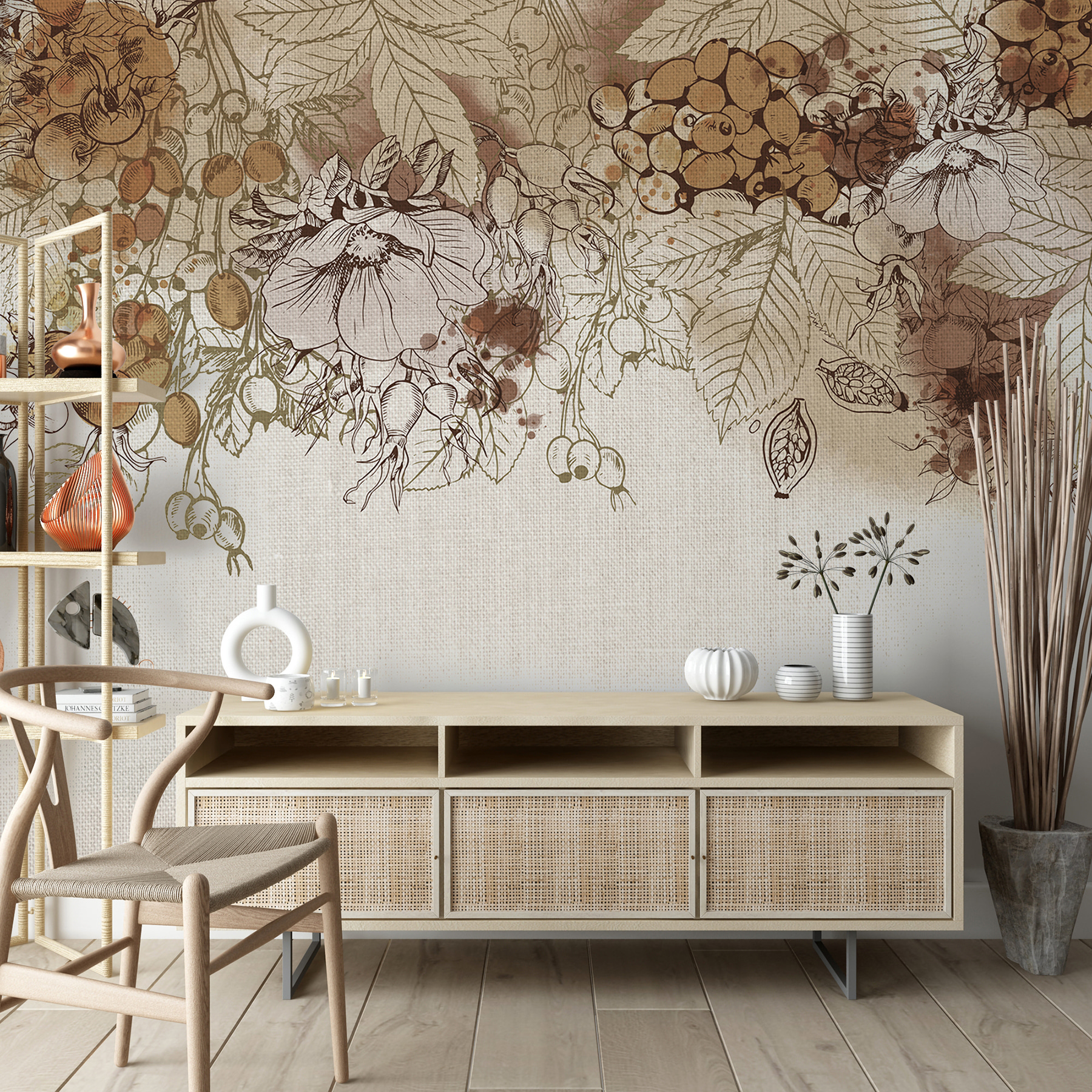 Trasformate qualsiasi spazio con il fascino di Autumn Harvest in Sepia Tones. Questo murale cattura l’essenza dell’autunno con disegni delicati e una tavolozza calda e terrosa che sembra accogliente e invitante. Immaginate di accoccolarvi con una tazza di sidro caldo guardando questa bellezza sulla vostra parete: è come portare un tocco di raccolto in casa! Il gioco di colori tenui e dettagli intricati ispira un sogno sereno e pieno di natura. Perfetto per un salotto, è destinato a suscitare conversazioni. Gli amanti della natura si sentiranno a casa, come se stessero passeggiando in un tranquillo frutteto nel tardo autunno, immergendosi nella bellezza della natura. Aggiungetelo alle vostre pareti e vedrete il vostro spazio prendere vita con calore e carattere!