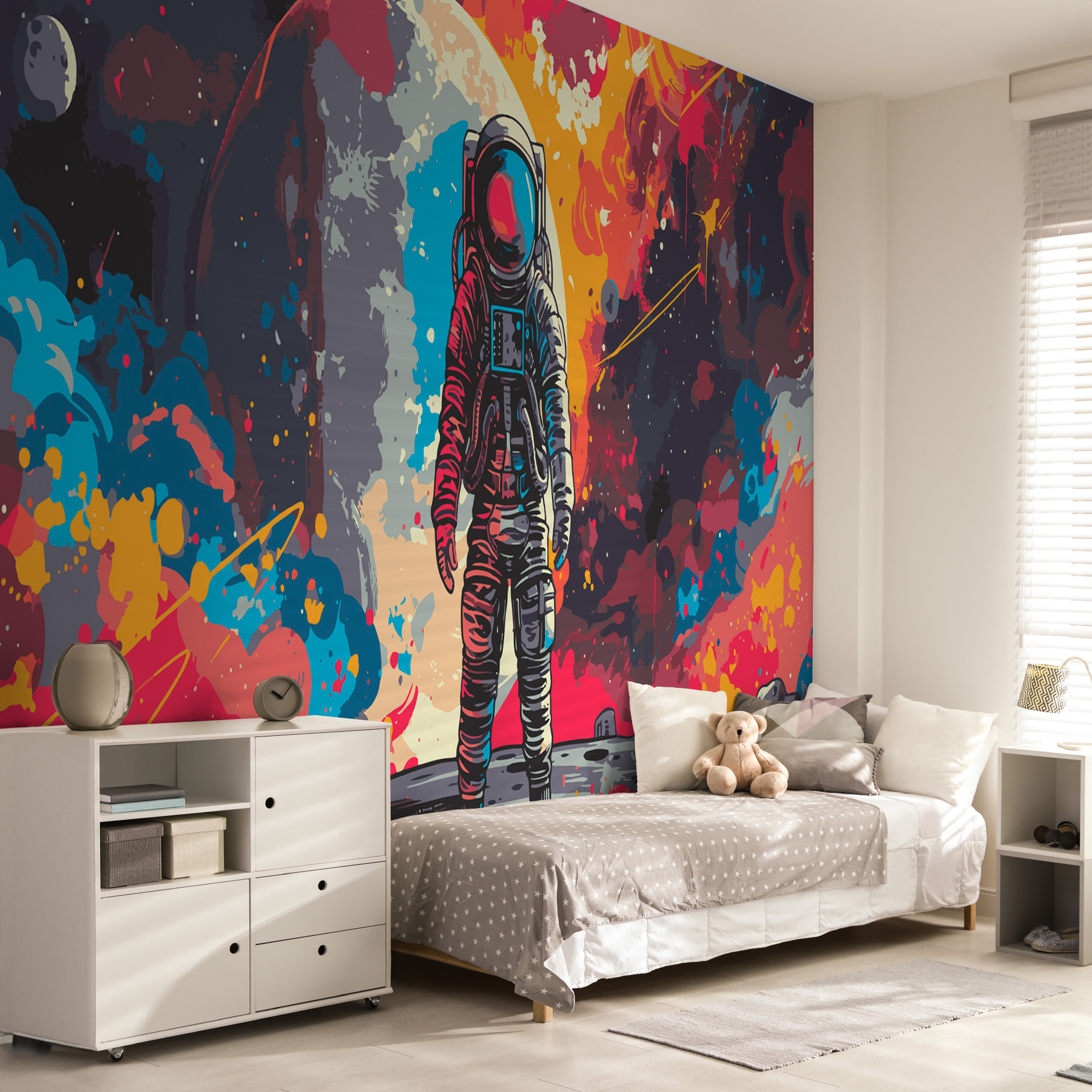 Immaginate un astronauta, uscito dai vostri sogni spaziali più sfrenati, in piedi di fronte a un’esplosione di scenari interstellari. È come una festa di danza cosmica ogni volta che la si guarda! Perfetto per chiunque voglia aggiungere un elemento di meraviglia e possibilità illimitate alla propria stanza. Bambini, adulti: tutti si perderanno nelle sue incantevoli vibrazioni galattiche. È il tipo di murale che fa pensare, sognare e forse anche pianificare un viaggio tra le stelle!