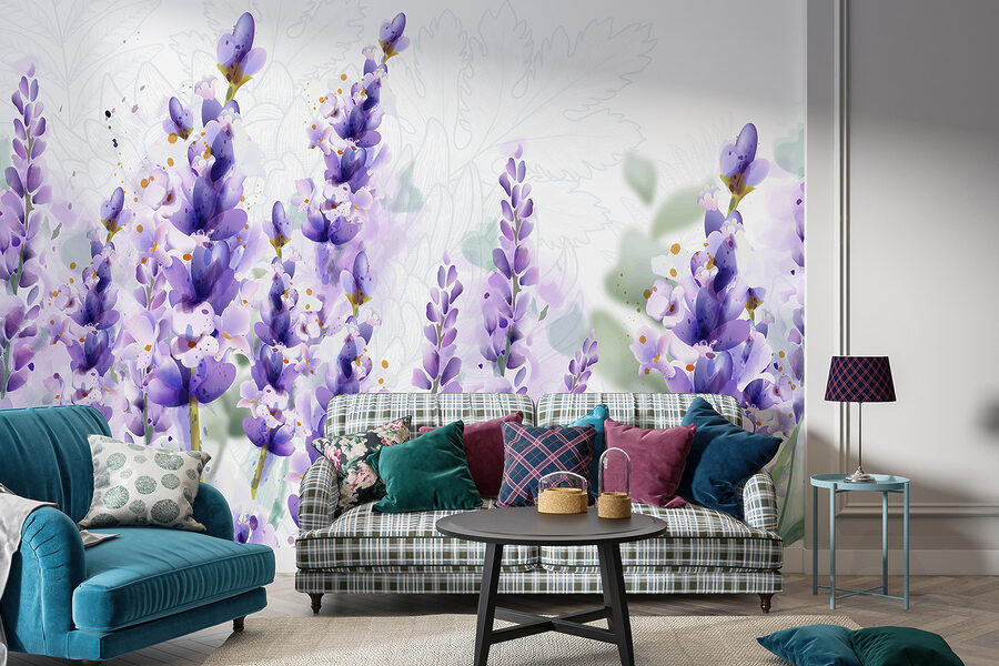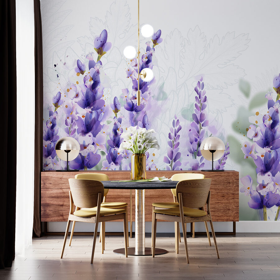 Con quei petali delicati e i tocchi di verde, è come se i fiori ondeggiassero in una leggera brezza. Inspirate (ok, non letteralmente), ma lasciate che questi fiori vi trasportino in un tranquillo campo di lavanda. Non è solo un murale, è una fetta di tranquillità per la vostra parete!