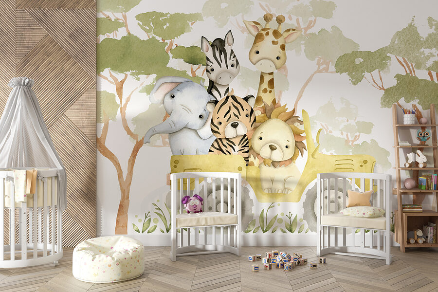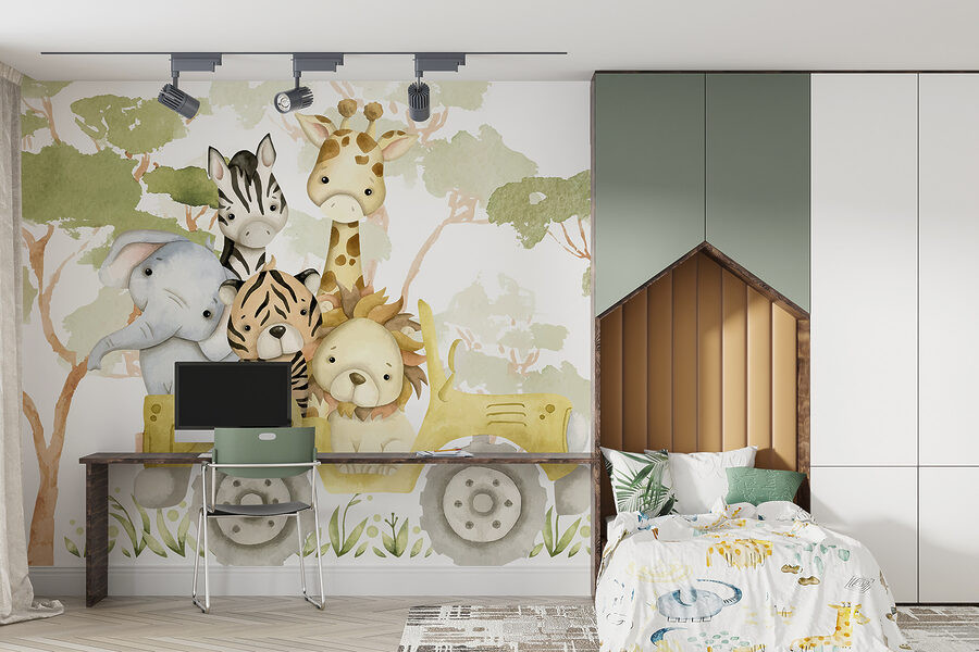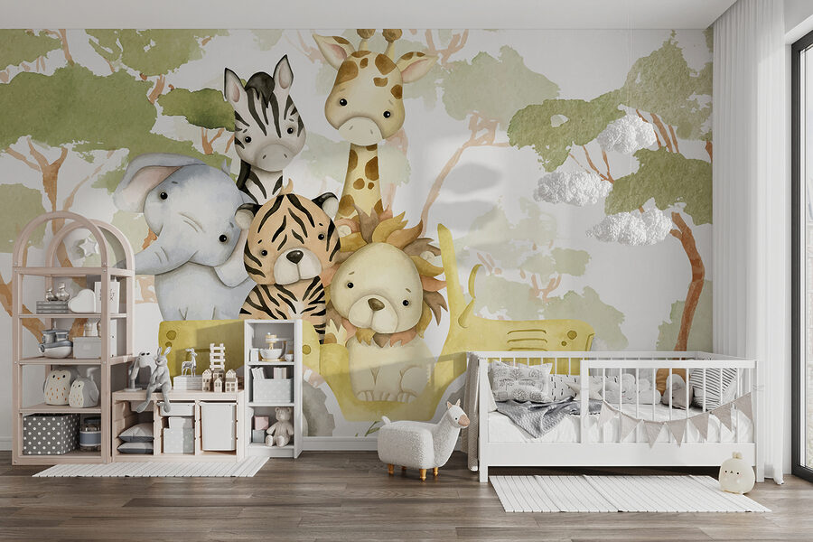 Immaginatevi: entrate in una stanza e queste simpatiche creature vi accolgono con le loro espressioni curiose. È come se vi invitassero a partecipare alla loro piccola fuga! Lo stile acquerello conferisce un’atmosfera delicata e rilassante: sembra quasi che la scena di un libro di fiabe si svolga proprio a casa vostra. Che stiate trasformando la stanza di un bambino o che vogliate semplicemente dare un tocco di allegria alla vostra vita, questo murale fa al caso vostro.