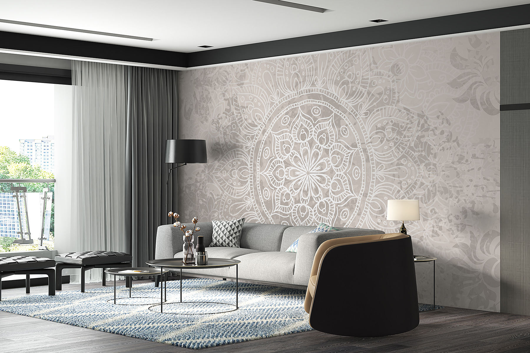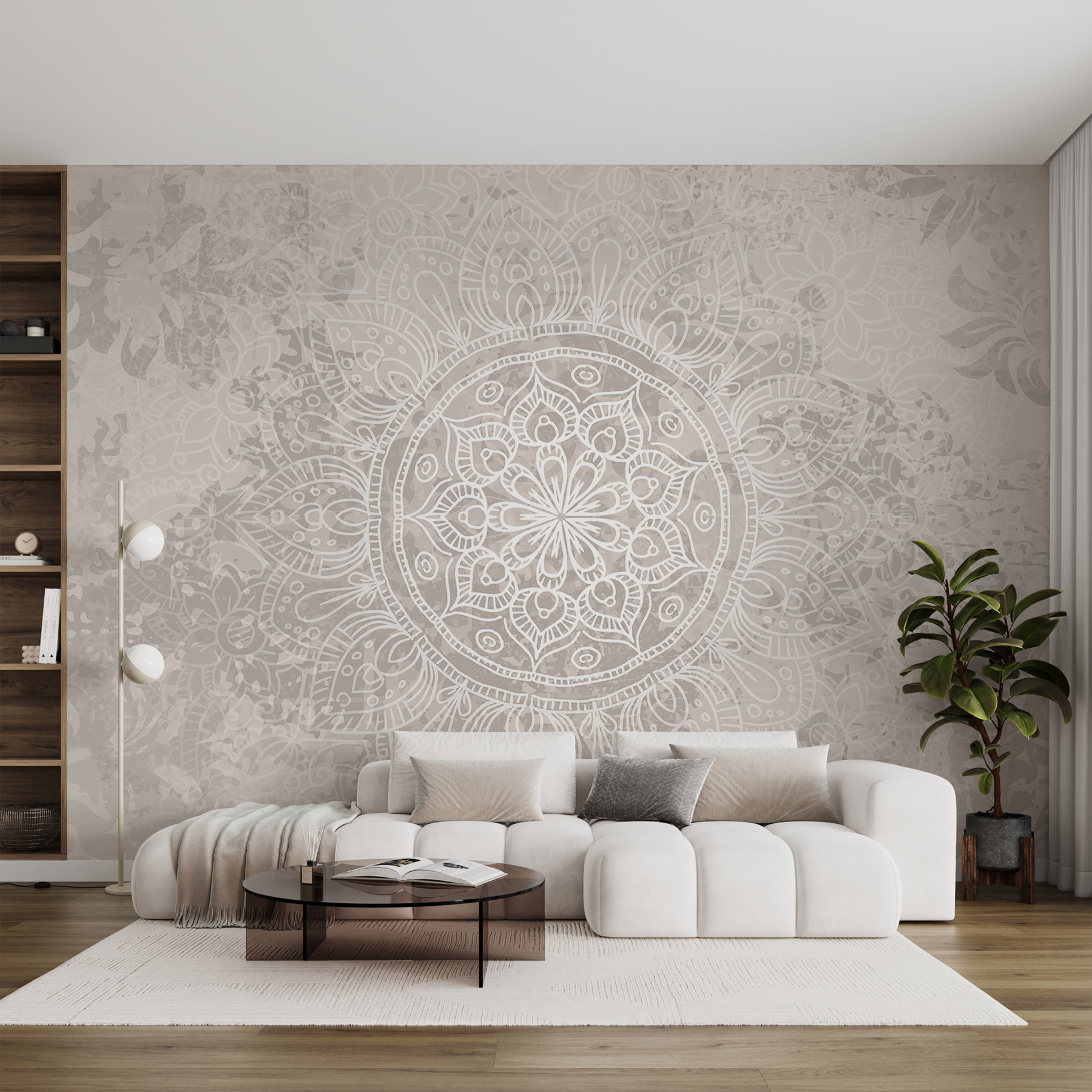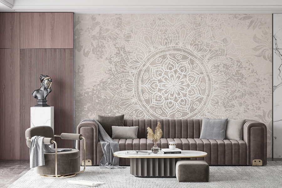 Carta da parati Mandala bianco e grigio (SKU: w08246)