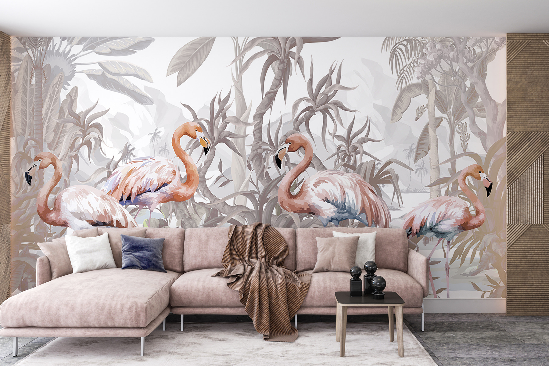 Entrate in un mondo stravagante con questo murale di fenicotteri. Immaginate di sorseggiare il vostro caffè mattutino mentre questi eleganti uccelli, appollaiati in mezzo a un rigoglioso fogliame tropicale, illuminano il vostro spazio. Le tonalità tenui creano un’atmosfera serena, quasi come se steste facendo una mini-vacanza ogni giorno. Perfetto per aggiungere un tocco di natura al salotto o alla camera da letto. È come avere una fetta di paradiso nascosta proprio sulla parete. Chi l’avrebbe mai detto che i fenicotteri potessero essere i vostri nuovi migliori amici d’arredamento? La raffinatezza delle piume incontra il fascino del relax.