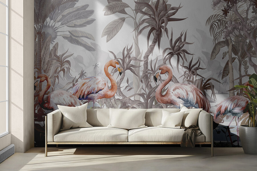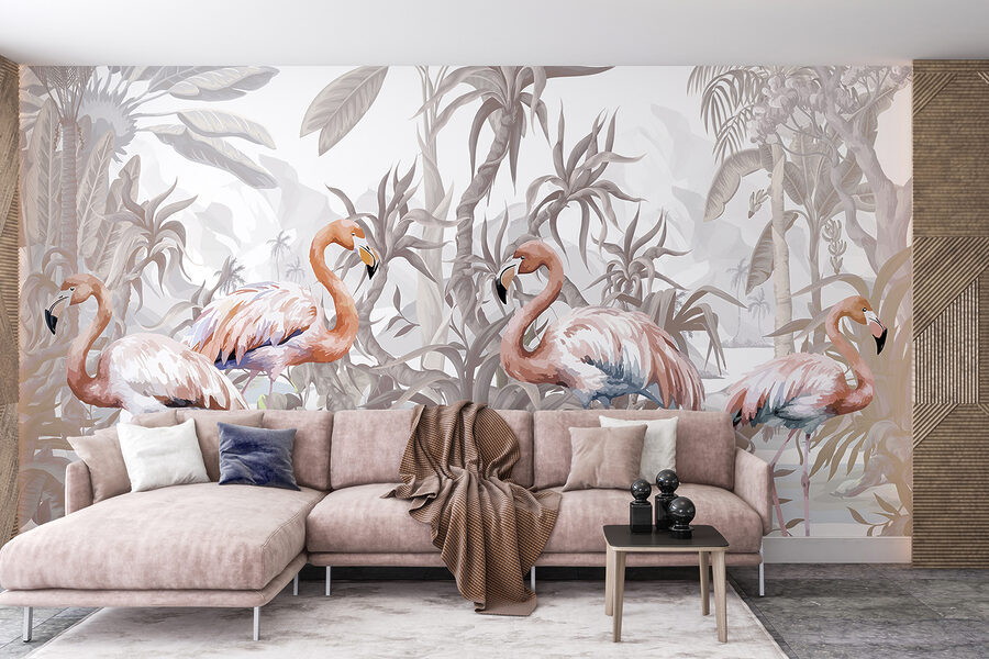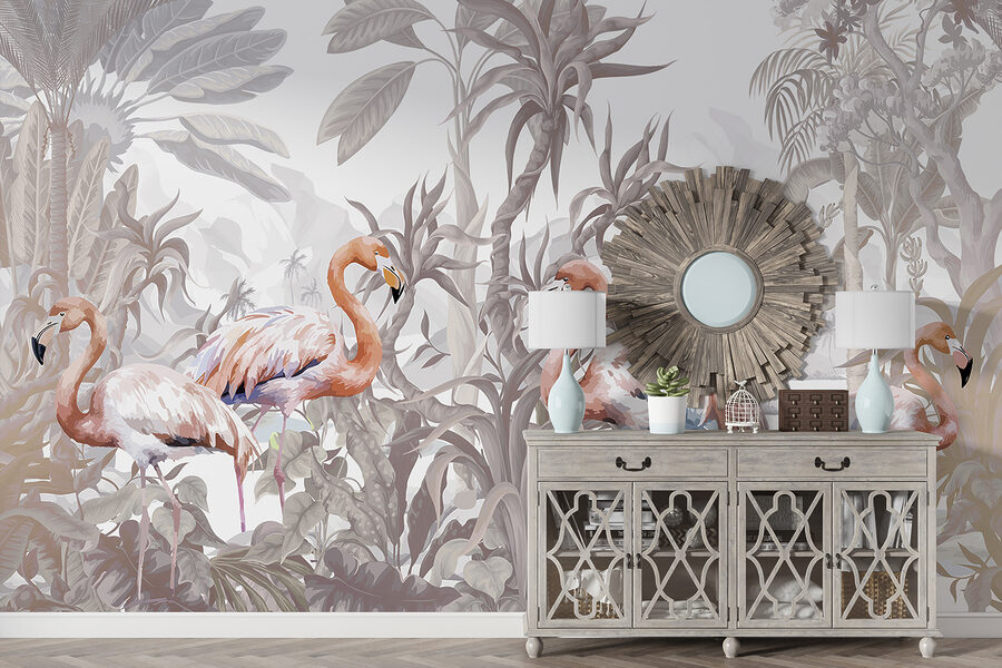 Entrate in un mondo stravagante con questo murale di fenicotteri. Immaginate di sorseggiare il vostro caffè mattutino mentre questi eleganti uccelli, appollaiati in mezzo a un rigoglioso fogliame tropicale, illuminano il vostro spazio. Le tonalità tenui creano un’atmosfera serena, quasi come se steste facendo una mini-vacanza ogni giorno. Perfetto per aggiungere un tocco di natura al salotto o alla camera da letto. È come avere una fetta di paradiso nascosta proprio sulla parete. Chi l’avrebbe mai detto che i fenicotteri potessero essere i vostri nuovi migliori amici d’arredamento? La raffinatezza delle piume incontra il fascino del relax.
