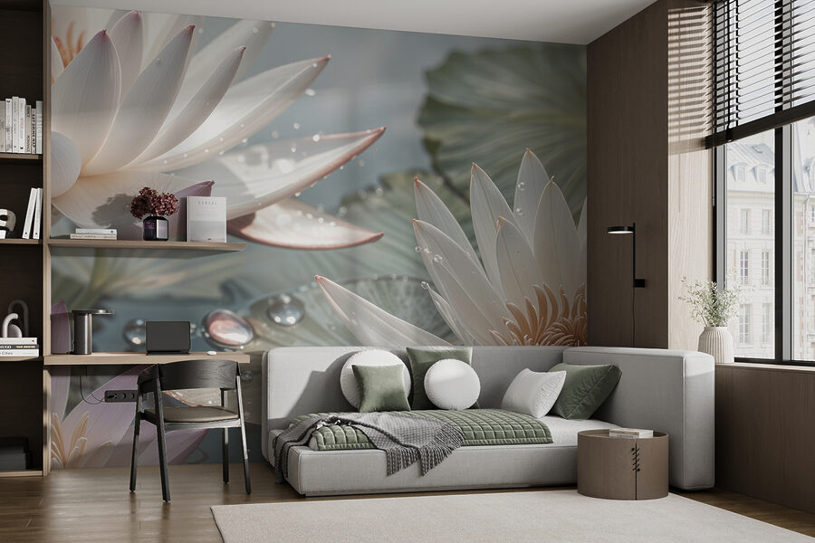 Immaginate di svegliarvi in una stanza che sembra una tranquilla mattina in riva al lago, dove i fiori di loto brillano di rugiada fresca: un piacere davvero semplice. Questo murale non è solo un elemento d’arredo, ma una porta d’accesso allo zen, che fa sentire anche il lunedì mattina un po’ più grazioso. Immaginate di sprofondare in una comoda poltrona con una tazza di tè, circondati da questa scena serena. È una piccola opera d’arte della natura sparsa sulla parete. Perfetto per trovare un momento di pace nel caos o, almeno, per fingere di farlo.