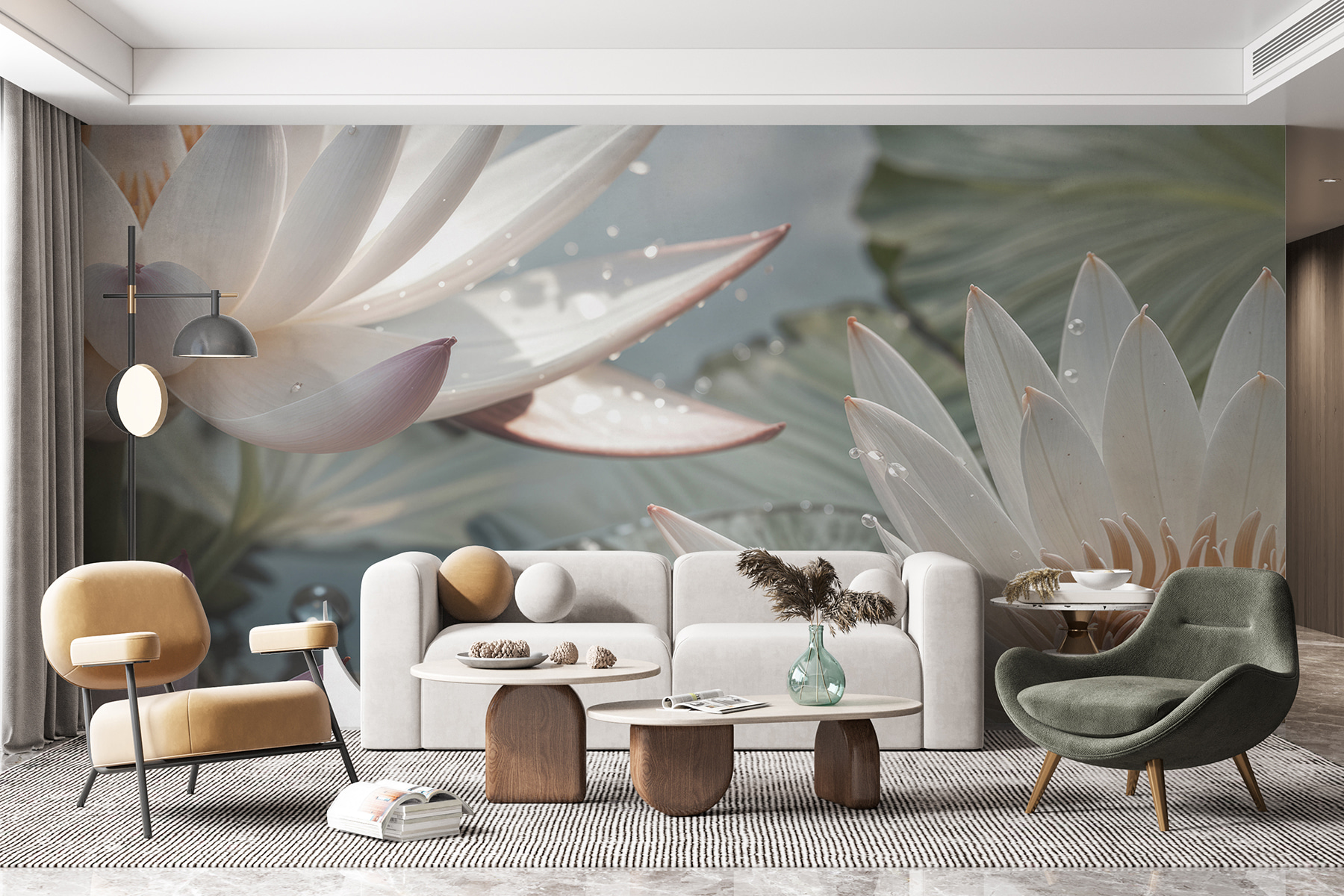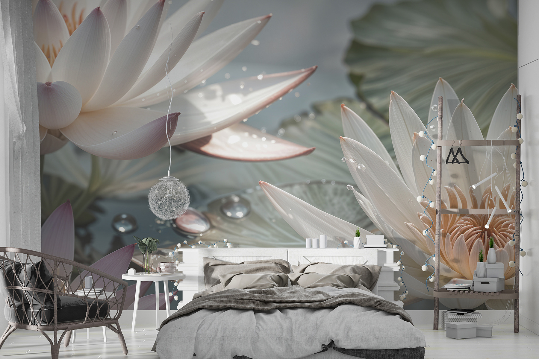 Immaginate di svegliarvi in una stanza che sembra una tranquilla mattina in riva al lago, dove i fiori di loto brillano di rugiada fresca: un piacere davvero semplice. Questo murale non è solo un elemento d’arredo, ma una porta d’accesso allo zen, che fa sentire anche il lunedì mattina un po’ più grazioso. Immaginate di sprofondare in una comoda poltrona con una tazza di tè, circondati da questa scena serena. È una piccola opera d’arte della natura sparsa sulla parete. Perfetto per trovare un momento di pace nel caos o, almeno, per fingere di farlo.