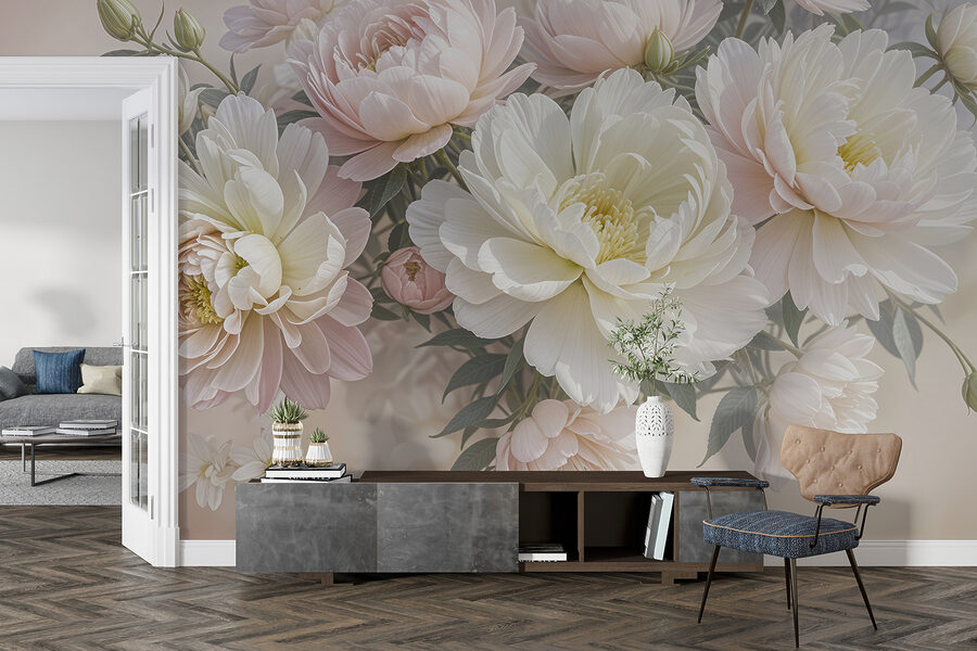 Immaginate di entrare in una stanza ed essere accolti da questo mare sognante di fiori bianchi e rosa, come se foste entrati in un giardino da favola! Questo murales sussurra eleganza e allegria, non è vero? Perfetto per trasformare qualsiasi spazio noioso in un rifugio sereno. Immaginate di svegliarvi con queste peonie giganti che vi avvolgono in un morbido abbraccio floreale. È un po’ come se la natura avesse deciso di accamparsi sulla vostra parete. Perfetto per i sognatori e gli amanti dei fiori, è un accogliente abbraccio artistico che aspetta di illuminare la vostra giornata. Basta aggiungere una sedia comoda, un buon libro e lasciare che i fiori facciano la loro magia!