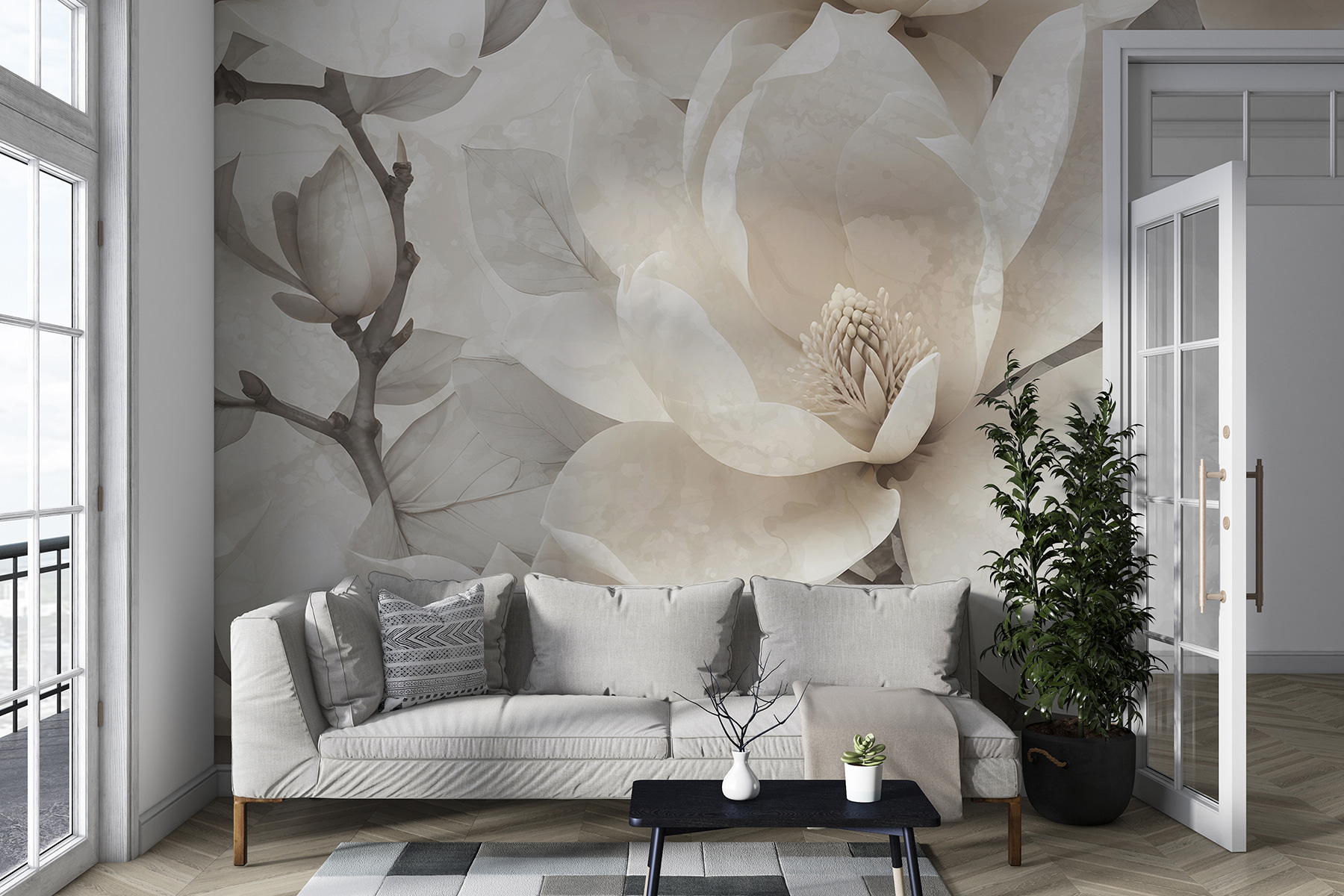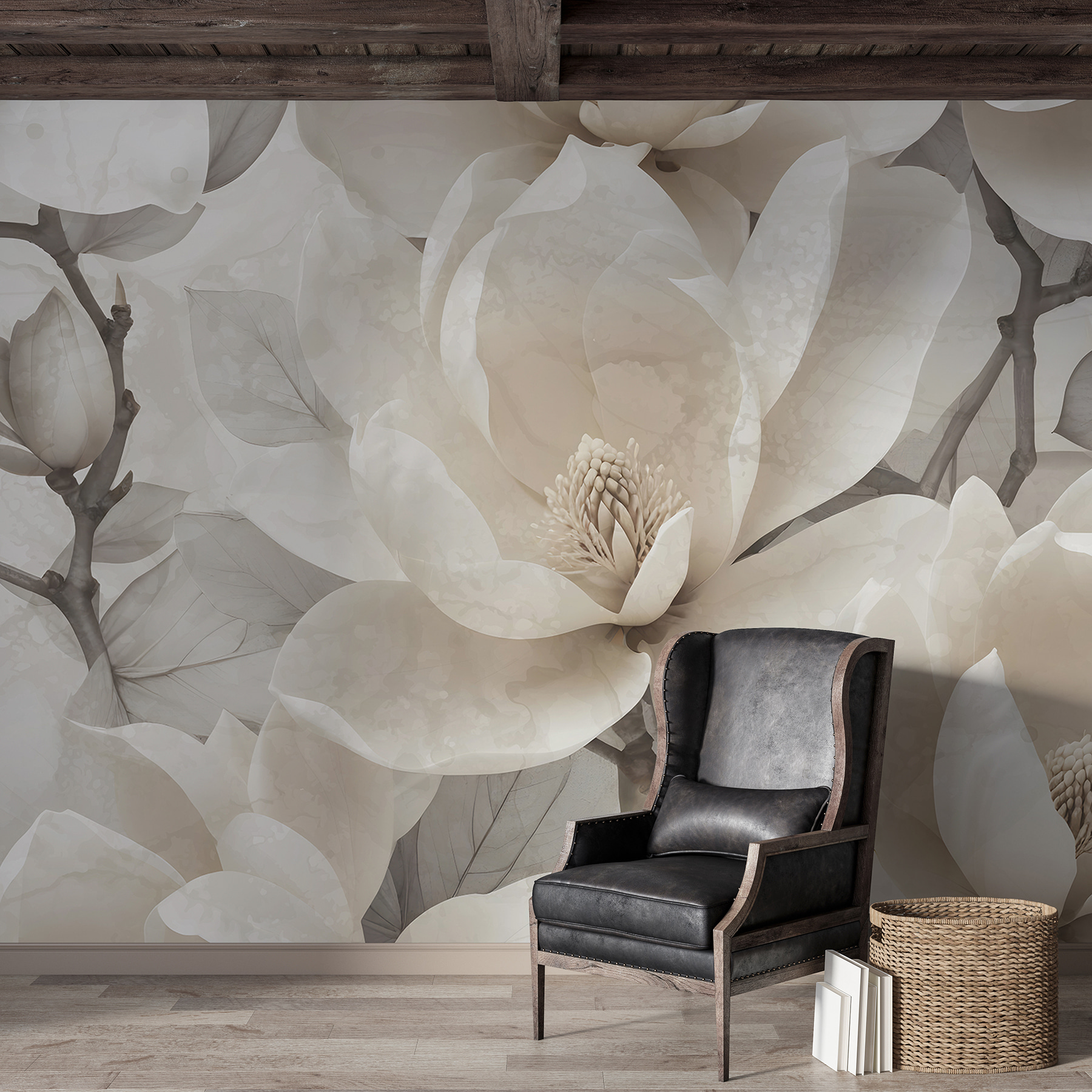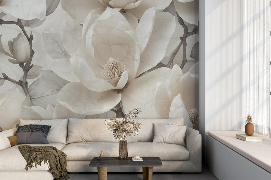 Immaginate di entrare in una stanza e di sentirvi come in un tranquillo giardino di magnolie, senza nemmeno uscire di casa. Questo murale di eleganti magnolie in toni tenui e sfumati è come un sussurro calmante, che avvolge istantaneamente lo spazio nella serenità. È perfetto per quando si vuole leggere il proprio libro preferito o sorseggiare una calda tazza di tè in un lento pomeriggio. I fiori sono così realistici che si potrebbe dimenticare che non sono in 3D! Ideale per chi ama la natura ma non ha il pollice verde. Basta promettere di non annaffiarlo!