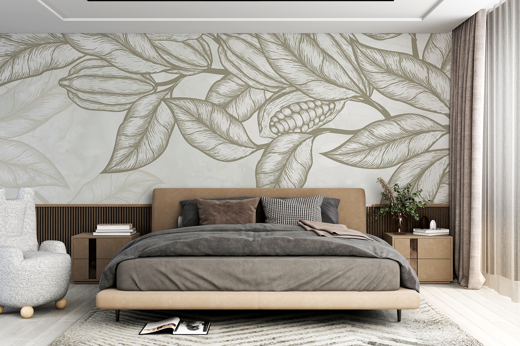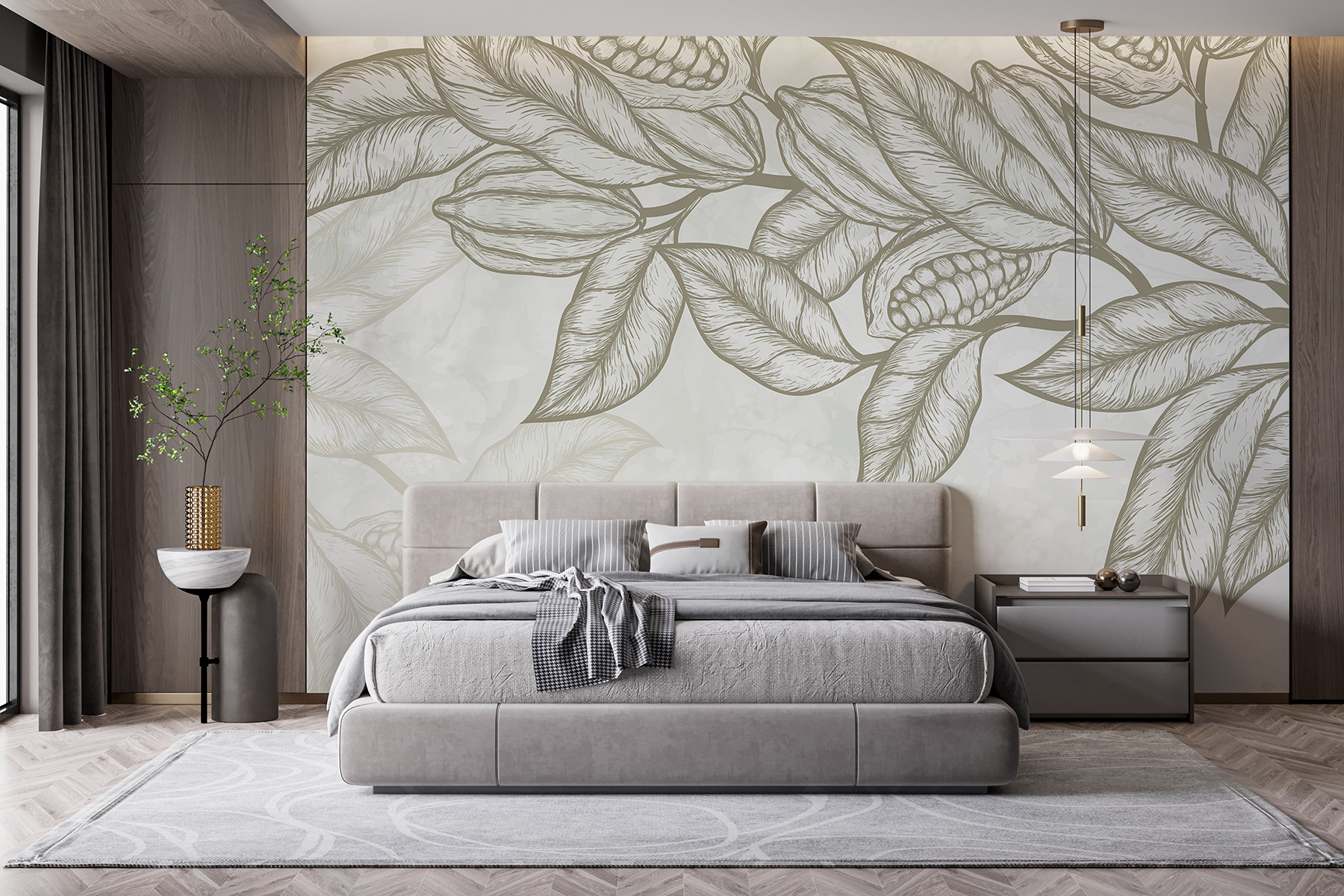 Immaginate di entrare nel vostro salotto e di essere accolti dalle foglie e dai fagioli della “Carta da parati Plant”. È come una fuga tropicale. Chi ha bisogno di una vacanza quando il vostro muro è una mini giungla? Il disegno è così vivido che ci si aspetta che le foglie comincino a frusciare o che i fagioli si aprano. È come avere un pezzo di natura serena proprio lì, senza gli insetti e l’umidità. Questo murale è la soluzione ideale per portare un po’ di aria aperta in casa, mantenendo un aspetto elegante e accogliente.