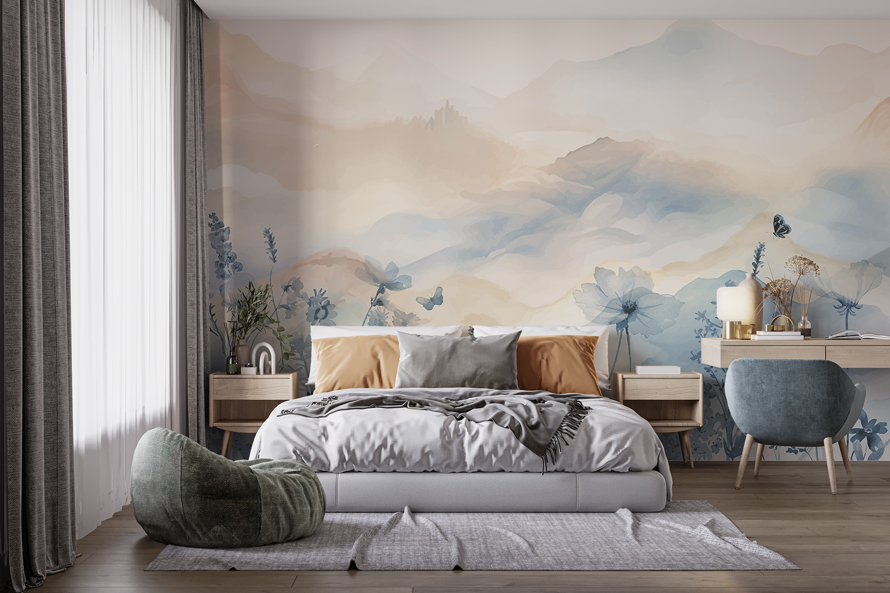 Immaginate di entrare in una stanza dove le pareti raccontano una storia delicata: questo murale ad acquerello fa proprio questo. È come essere avvolti in un mondo morbido e sognante dove i fiori sbocciano e le farfalle svolazzano delicatamente. Perfetto per tutti gli amanti della natura o per chi desidera un tocco di fantasia nella propria vita! Immaginatelo in un accogliente angolo di lettura o nella vostra camera da letto; improvvisamente, lo spazio sembra vivo. Non è solo arte, è una piccola fuga senza uscire di casa. È così tranquillo che potreste sentire le farfalle sussurrare i loro segreti.