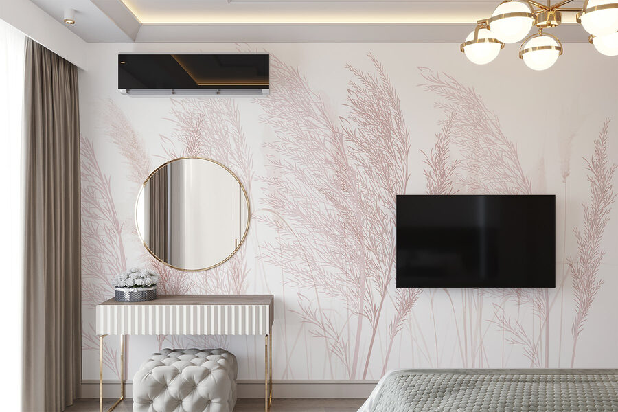 Immaginate questo: una leggera brezza che fruscia in un campo, dove le erbe ondeggiano e i piccoli fiori rosa fanno capolino timidamente. Questo murale, con la sua sottile bellezza, trasforma qualsiasi stanza in un rifugio tranquillo e ispirato alla natura. È il tipo di opera che ti fa fermare, respirare profondamente e forse anche sorridere, sentendo un po’ di calma nel caos. Perfetto per chi desidera un po’ di aria aperta in casa. Inoltre, è un delizioso sfondo per sognare ad occhi aperti: basta guardare i fiori che danzano sulla parete!