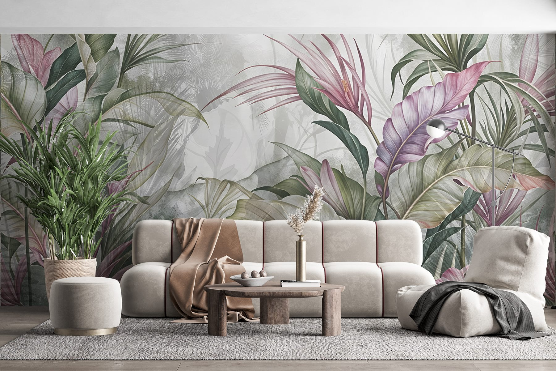Trasformate qualsiasi stanza in una serena fuga tropicale con questo splendido murale di fiori e foglie. Immaginate di immergervi in un’oasi lussureggiante ogni volta che ci passate davanti: pensate di potervi sdraiare su una sedia accogliente, sorseggiare un drink e sentirvi come in una vacanza al mare. I verdi tenui e i rosa delicati creano un’atmosfera rilassante, rendendola perfetta per un salotto o una camera da letto. Inoltre, aggiunge un tocco di natura senza bisogno di avere il pollice verde! Non è solo una decorazione da parete, ma un promemoria quotidiano per respirare con calma e immergersi nelle buone vibrazioni. Chi non desidera una piccola fetta di paradiso a casa propria?